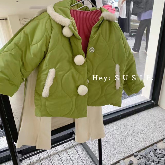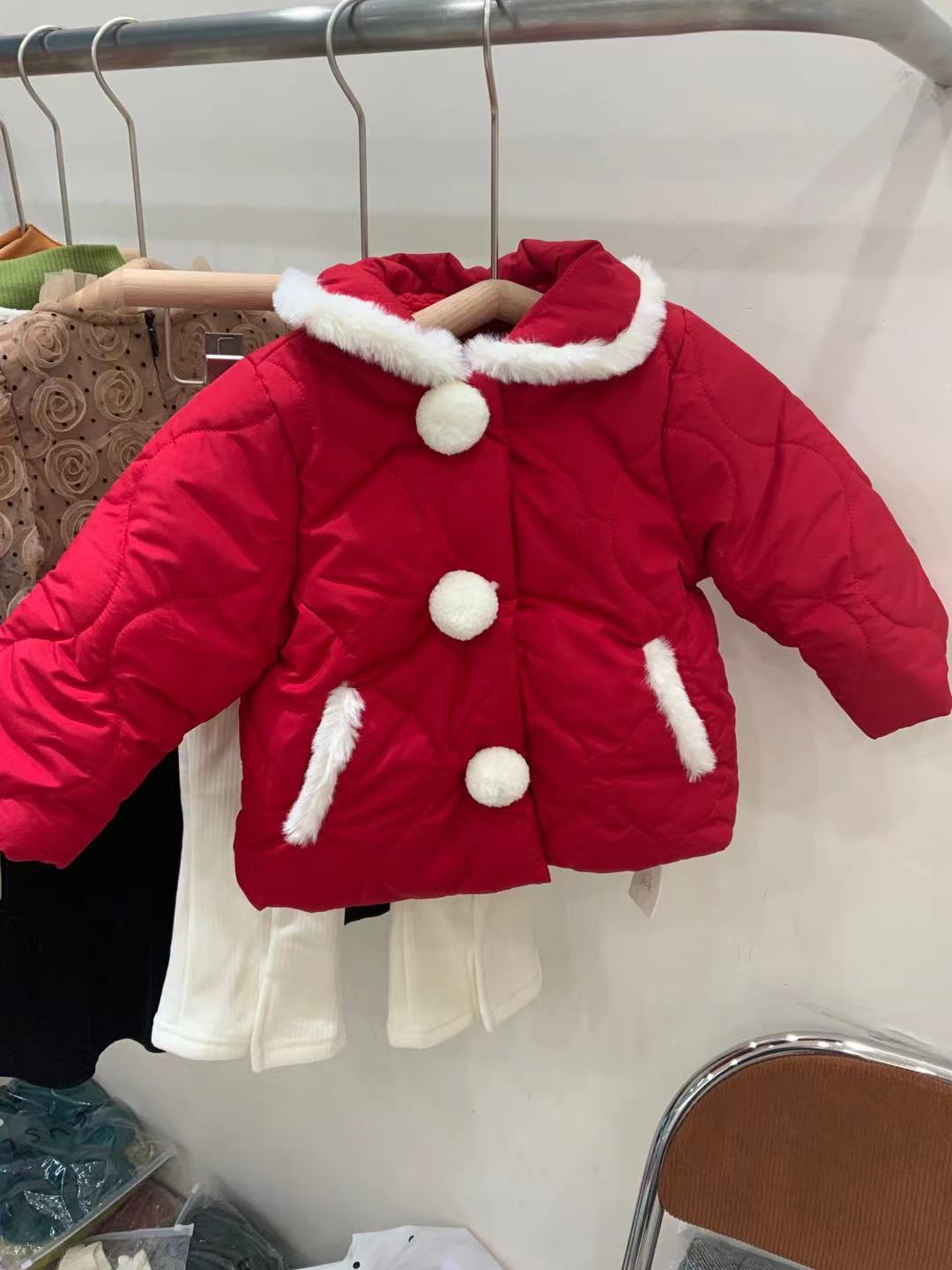 수지 가을과 겨울 여아 모피 볼 얇은 면 패딩 재킷 레드 웨스턴 스타일 코트 귀여운 아기 웨스턴 스타일 솔리드 아동 의류스토어 가기