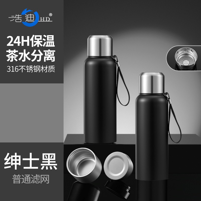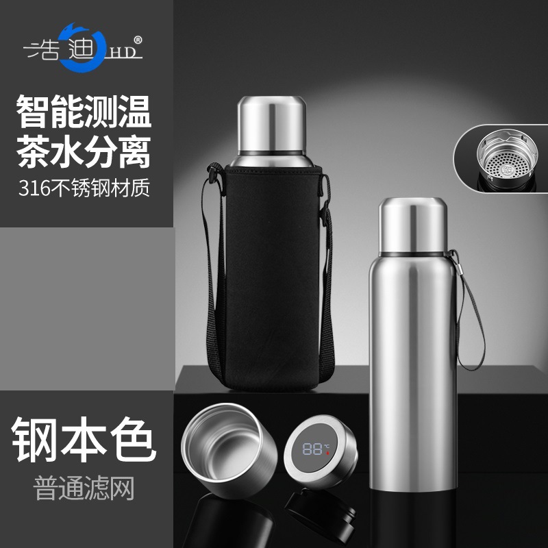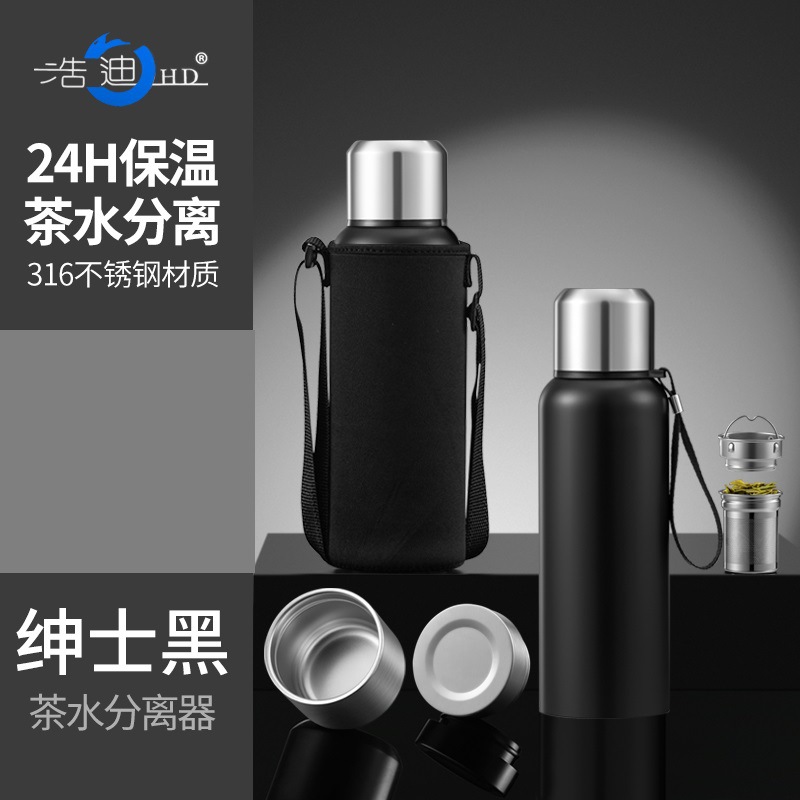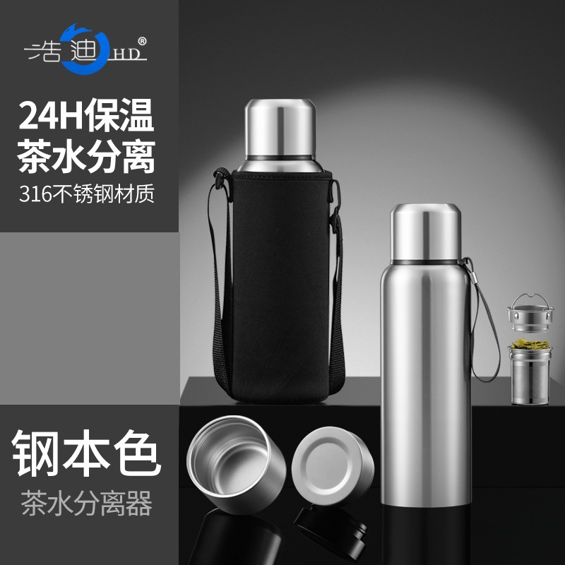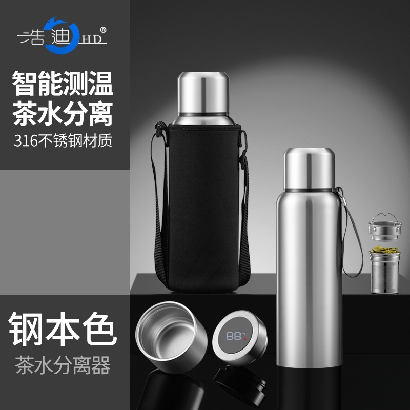 하오디 스마트 올스틸 316 스테인리스 대용량 보온 남성용 휴대용 야외 피트니스 차와 물 분리 물병