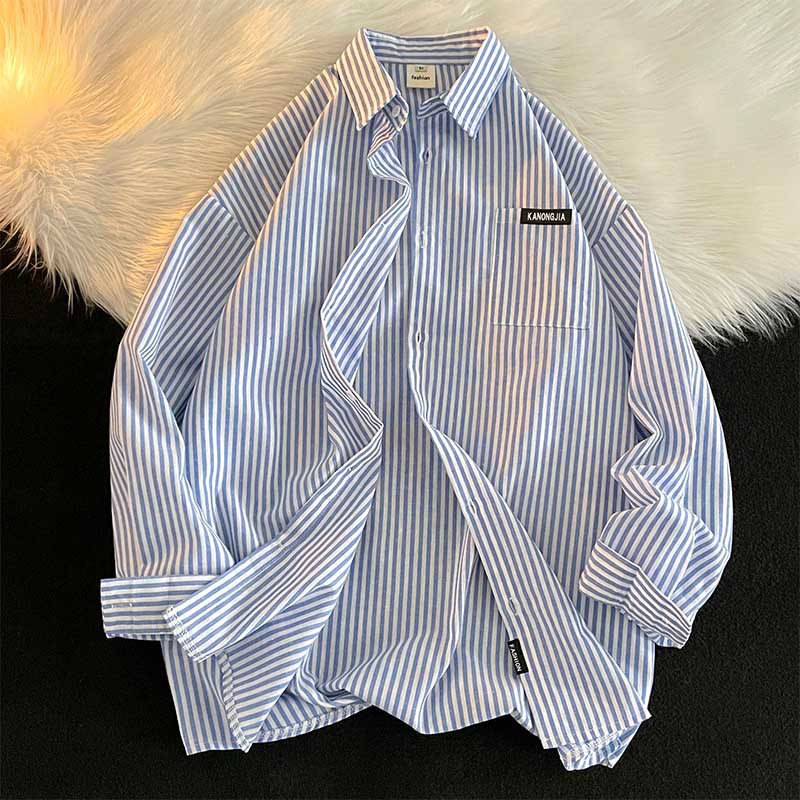 봄과 가을 긴 소매 세로 스트라이프 셔츠 남자의 더피 잘 생긴 캐주얼 홍콩 스타일 하이 스트리트 청소년 bf 한국 일본 스타일 유피 셔츠스토어 가기