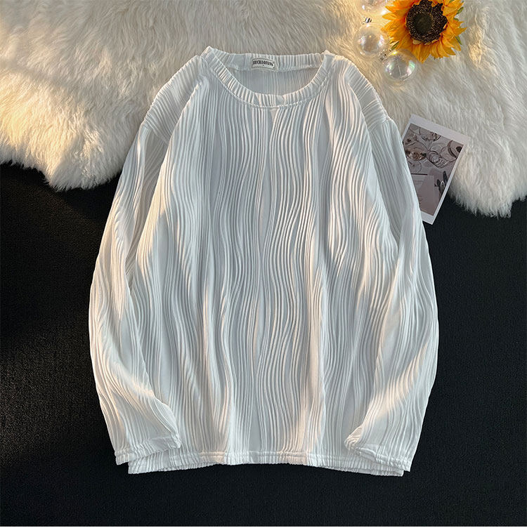 봄과 가을 스트라이프 긴팔 티셔츠 남성용 라운드 넥 패션 브랜드 십대 미국 스포츠 bf 일본 자카드 캐주얼 탑스토어 가기