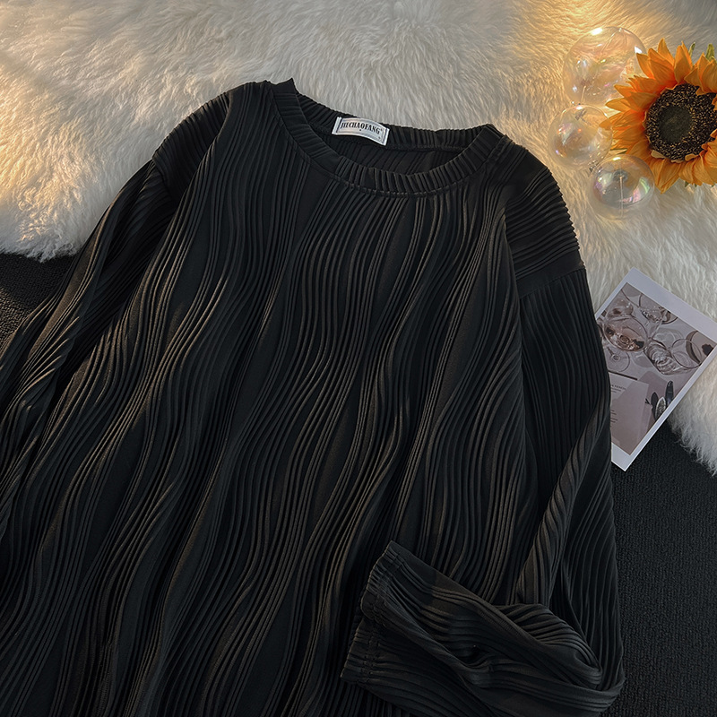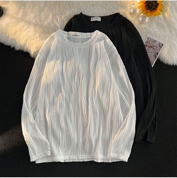 春秋条纹长袖T恤男圆领潮牌ins青少年美式运动bf日系提花休闲上衣