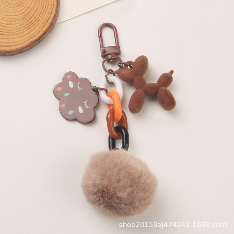 새로운 귀여운 모피 공 강아지 자동차 키 체인 펜던트 작은 신선한 다채로운 구름 액세서리 헤드폰 세트 가방 장식