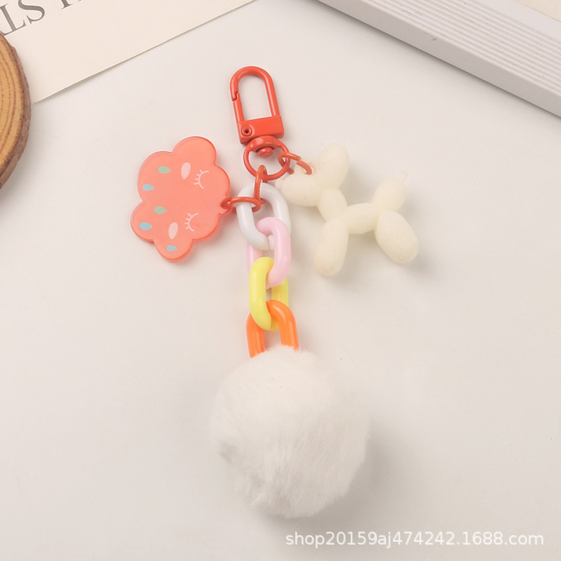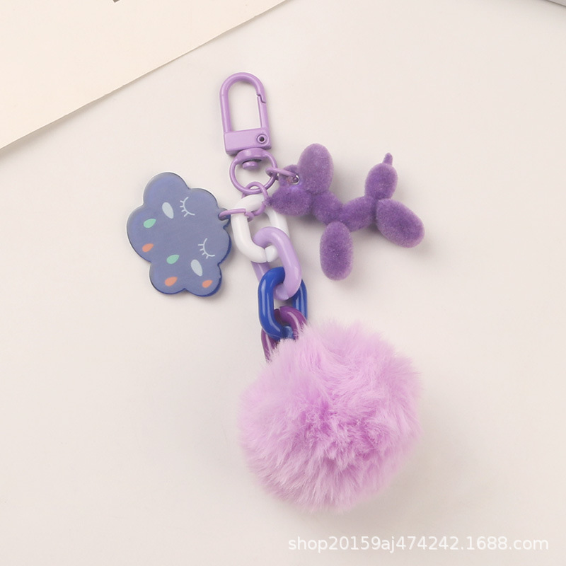 새로운 귀여운 모피 공 강아지 자동차 키 체인 펜던트 작은 신선한 다채로운 구름 액세서리 헤드폰 세트 가방 장식스토어 가기