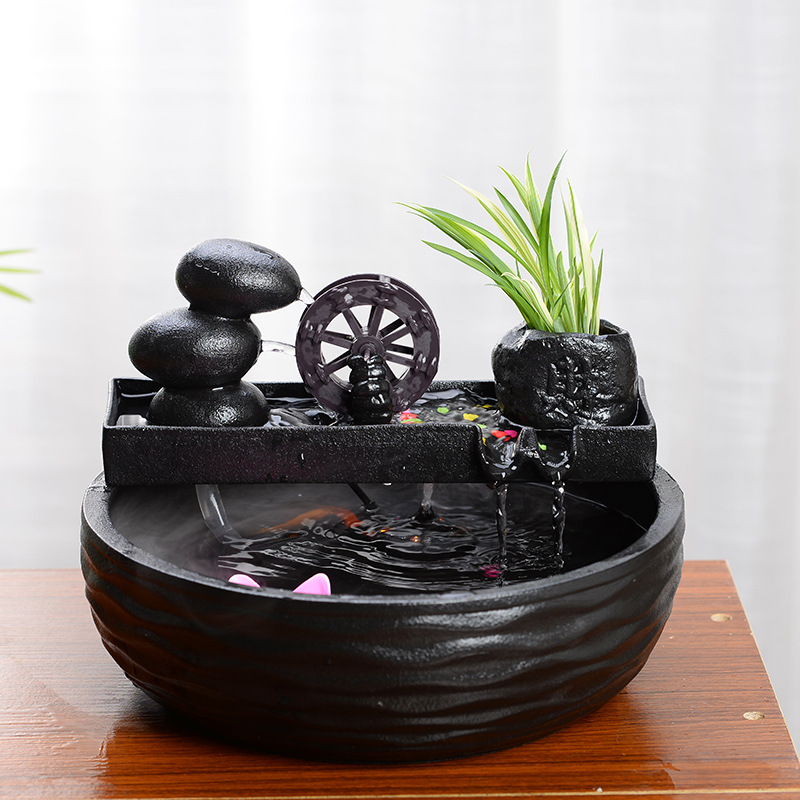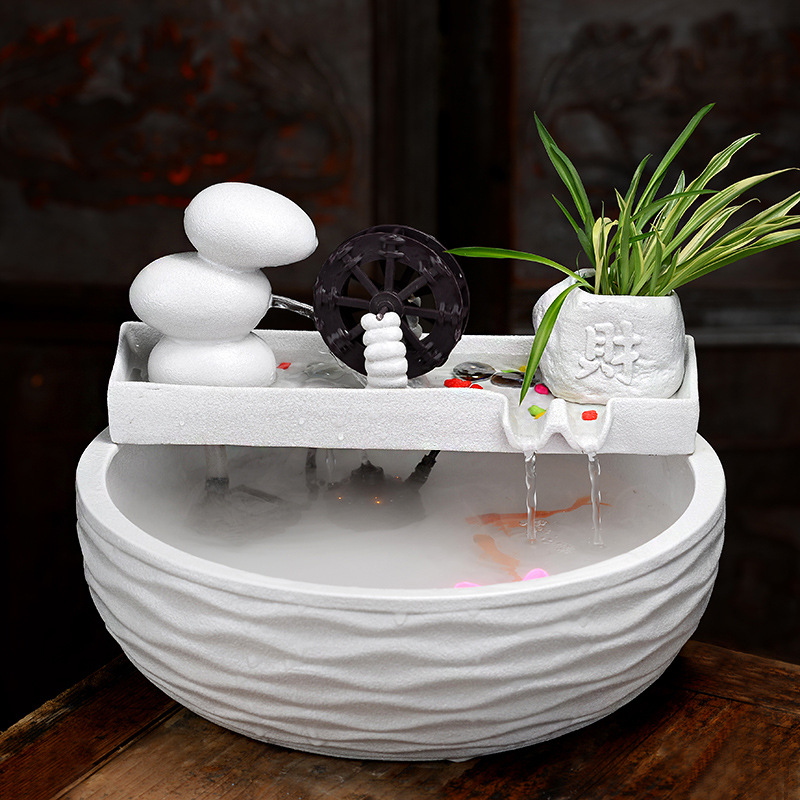 세라믹 분수 장식품 물 바퀴 실내 풍경 거실 책상 행운의 어항 가습 장식