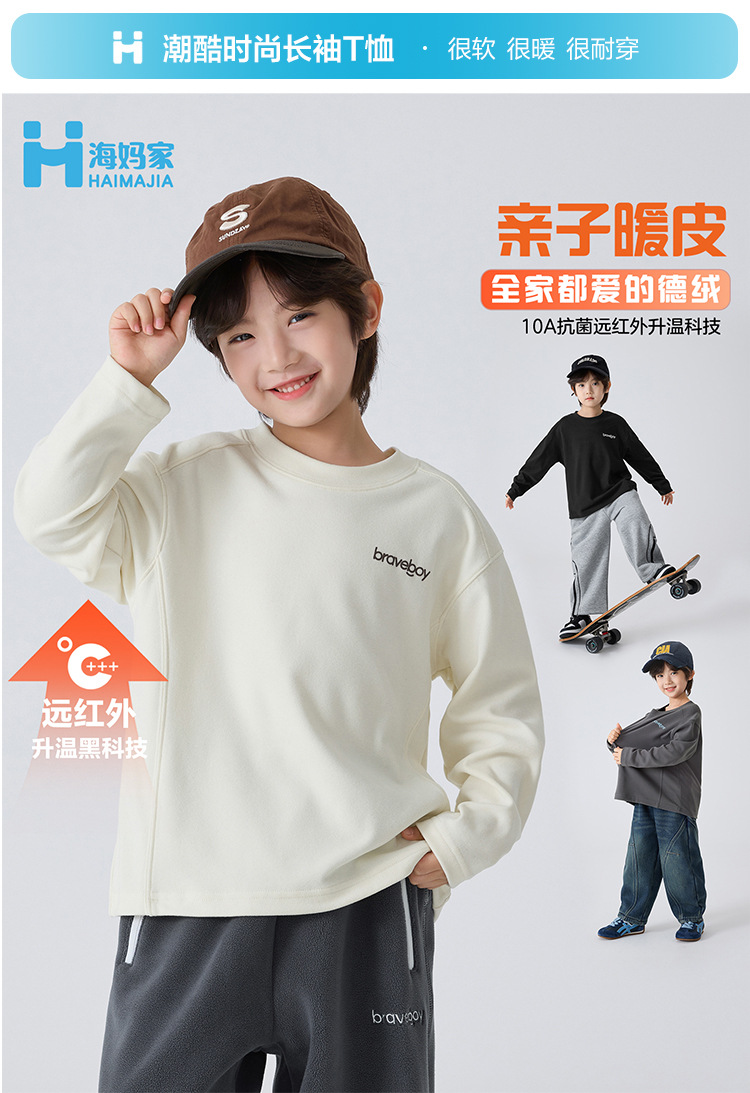 해마가족 2025 겨울 신상 남아용 겨울옷 이너웨어 독일산 레이온 긴팔 티셔츠 아동복 단색 보온 내의스토어 가기