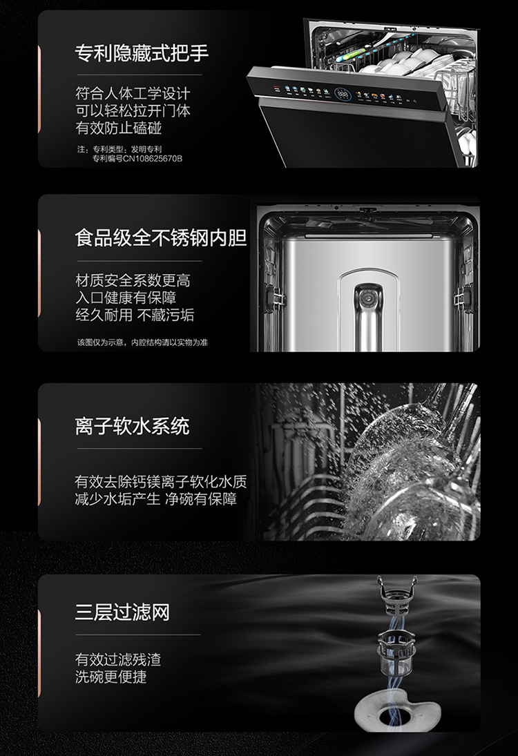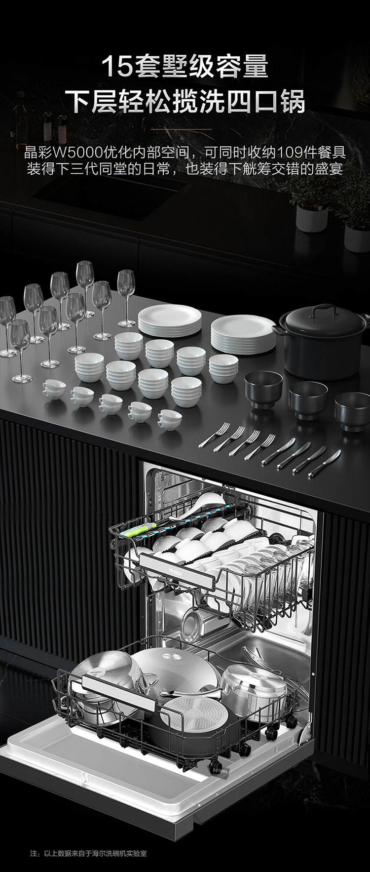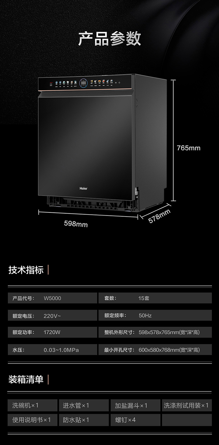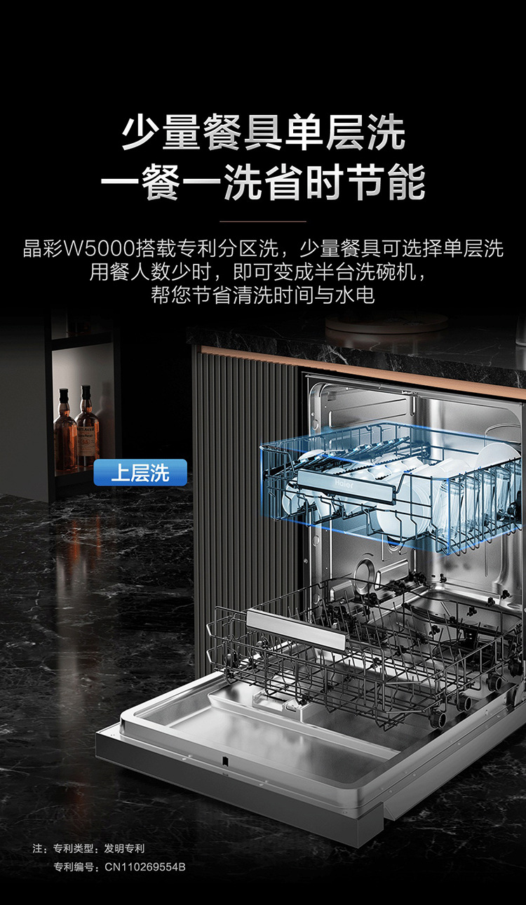 하이얼 양면 세척 식기 세척기 가정용 완전 자동 W5000 주파수 변환 9D 미세 세척 레벨 물 효과 15 세트 매입