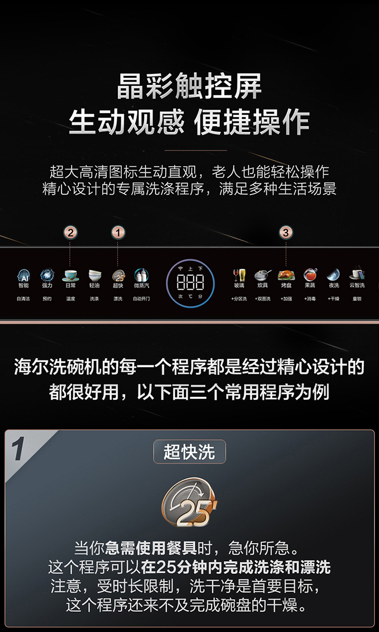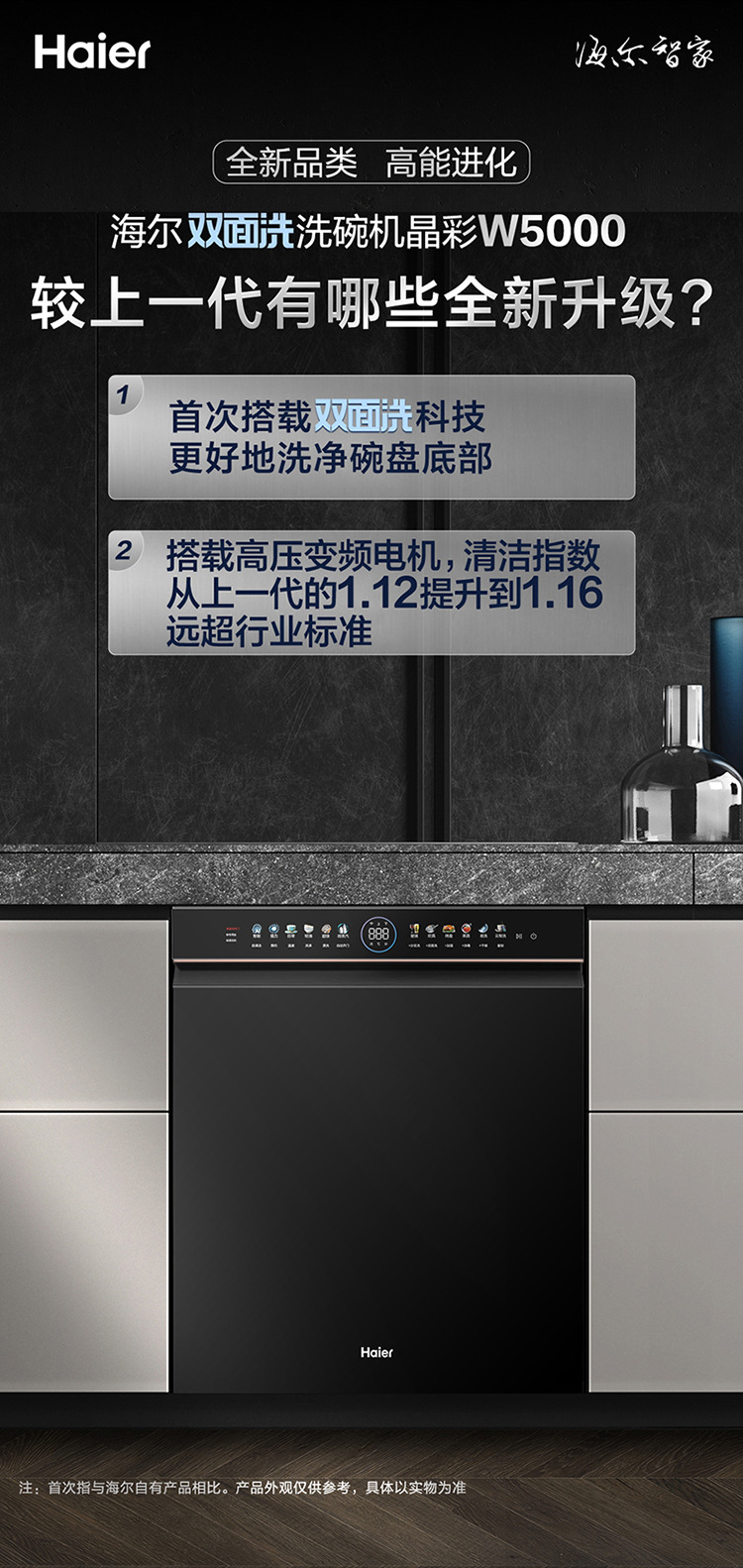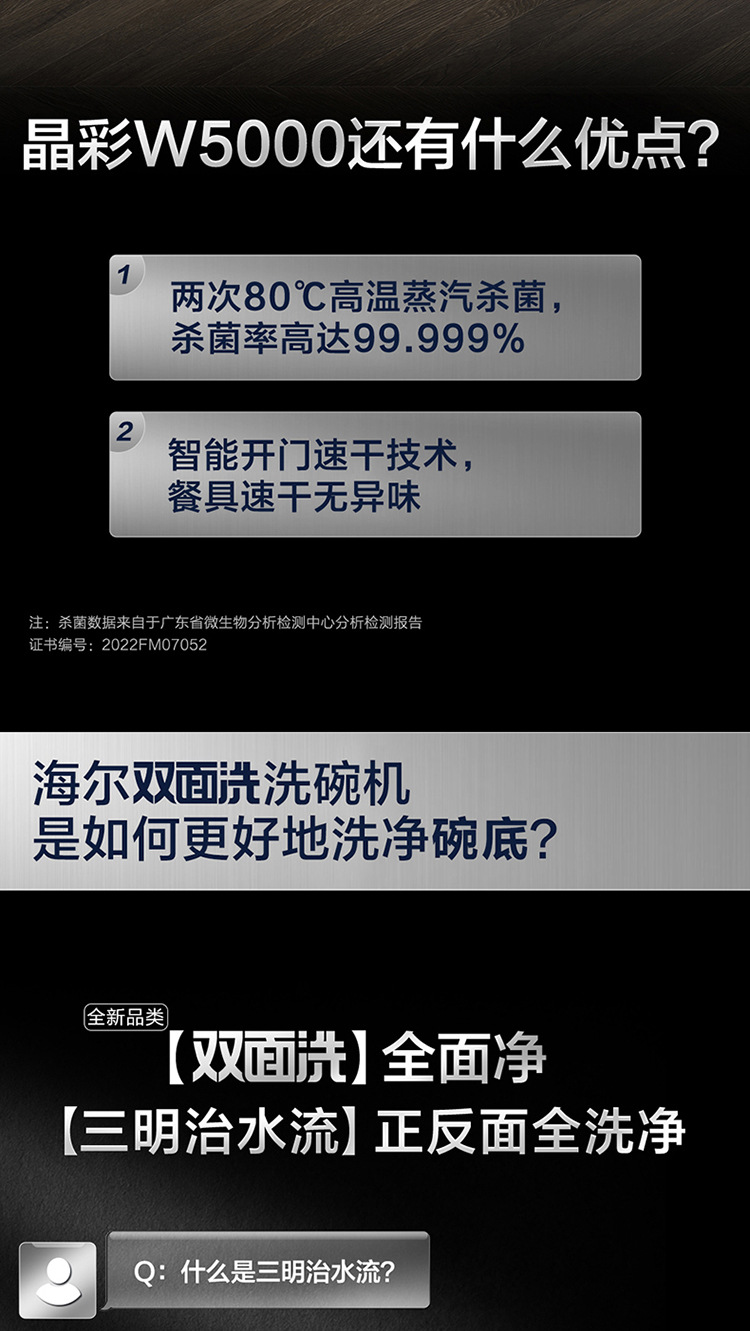 하이얼 양면 세척 식기 세척기 가정용 완전 자동 W5000 주파수 변환 9D 미세 세척 레벨 물 효과 15 세트 매입스토어 가기