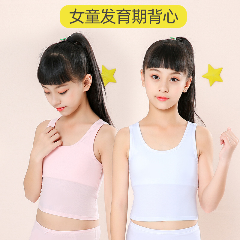가슴 패드 분리형 여아 발달 조끼 사춘기 충돌 방지 속옷 여아 베이스 셔츠 순면