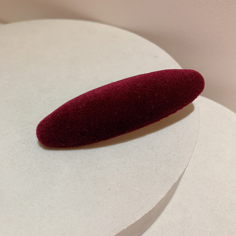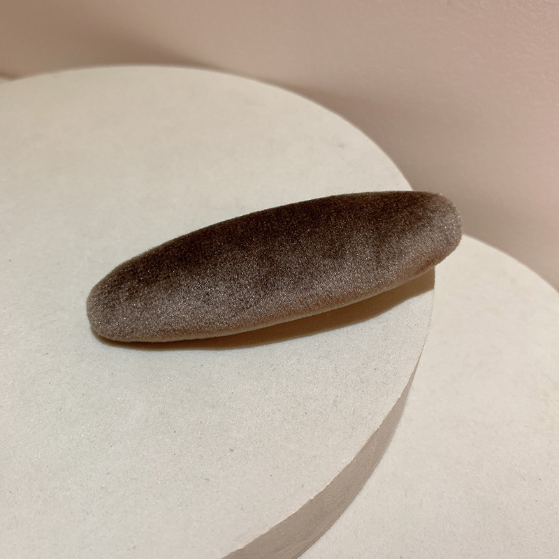 프랑스 복고풍 고급 단색 벨벳 타원형 스폰지 빵 오리 부리 클립 우아한 큰 미스 깨진 머리 앞머리 클립