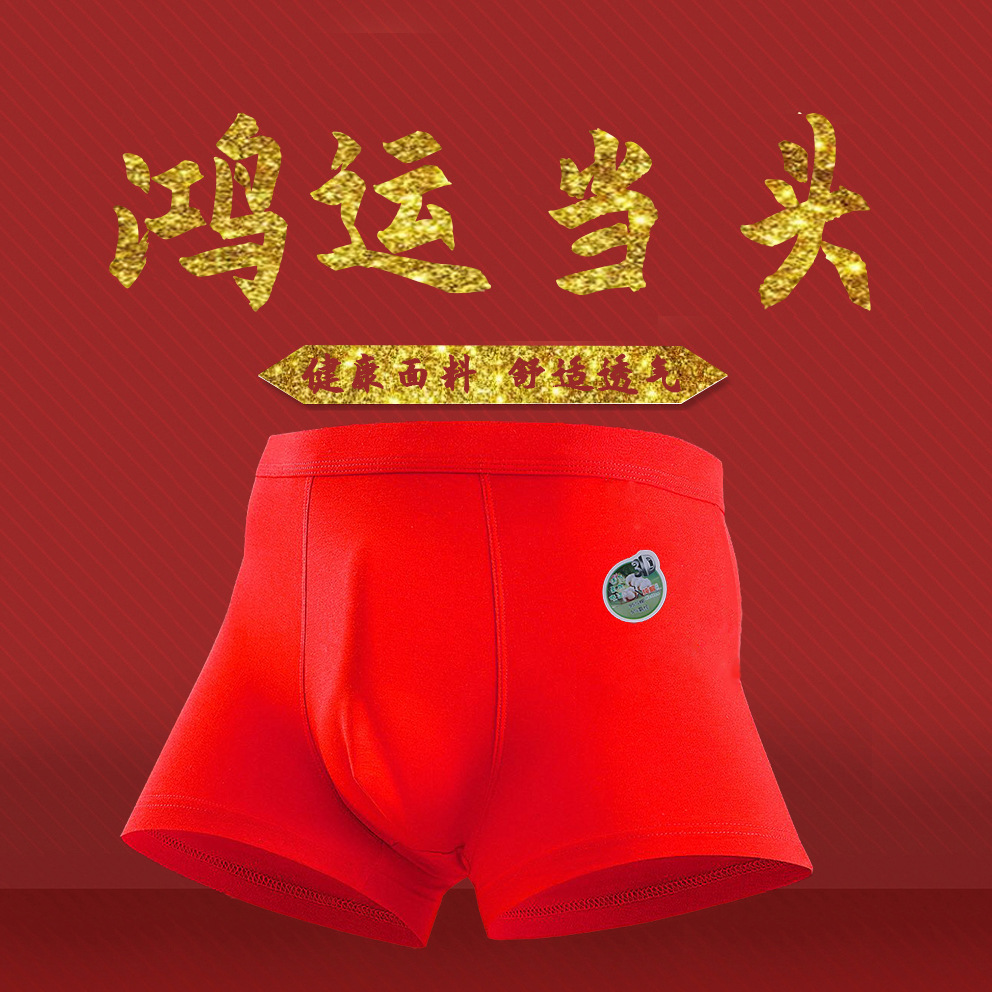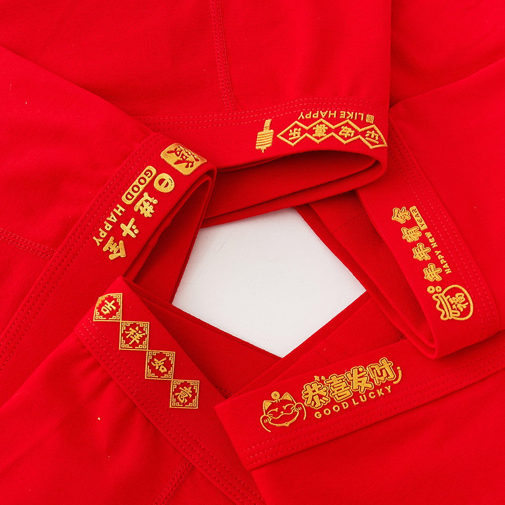 남성용 빨간 축복 인쇄 브닝 니언 속옷 빗질 코튼 속옷 남성용 복서 사이드 원활한