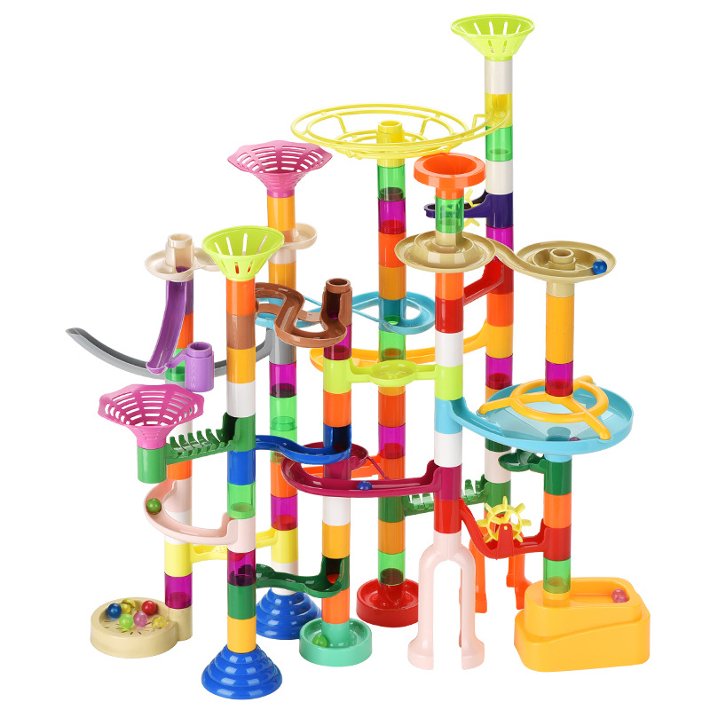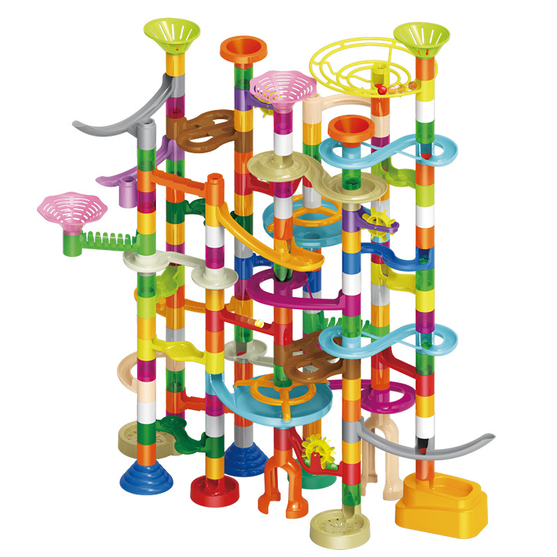 跨境亚马逊滚珠积木 夜光旋转立体迷宫大颗粒拼装DIY滑道儿童玩具
