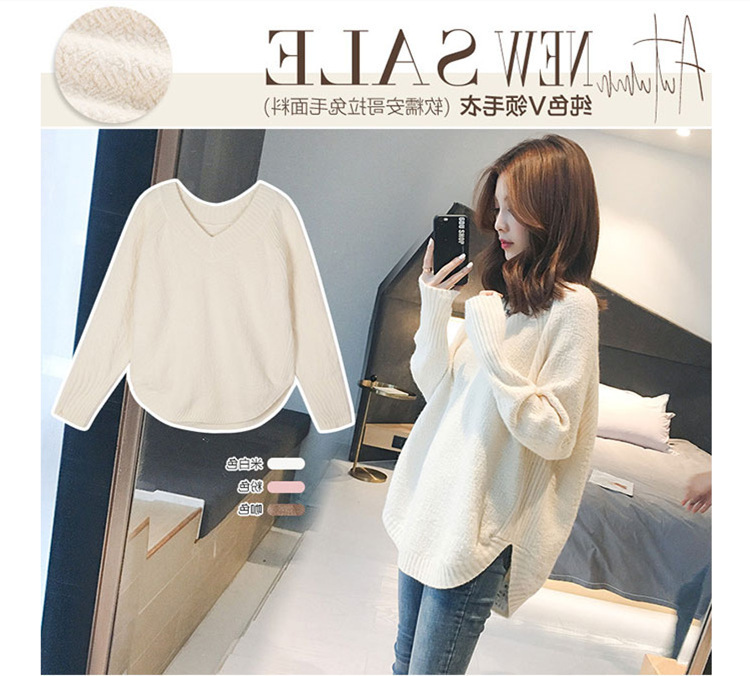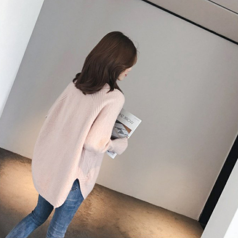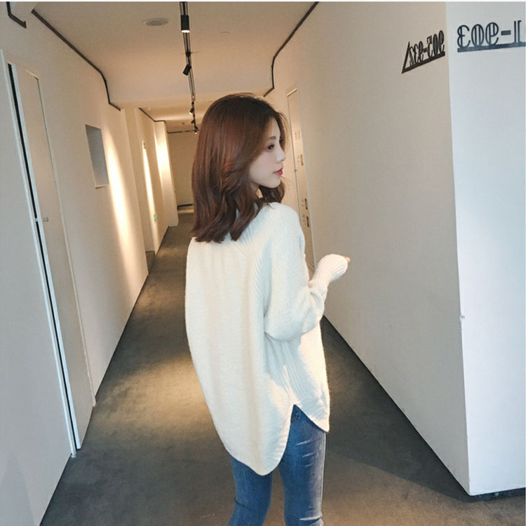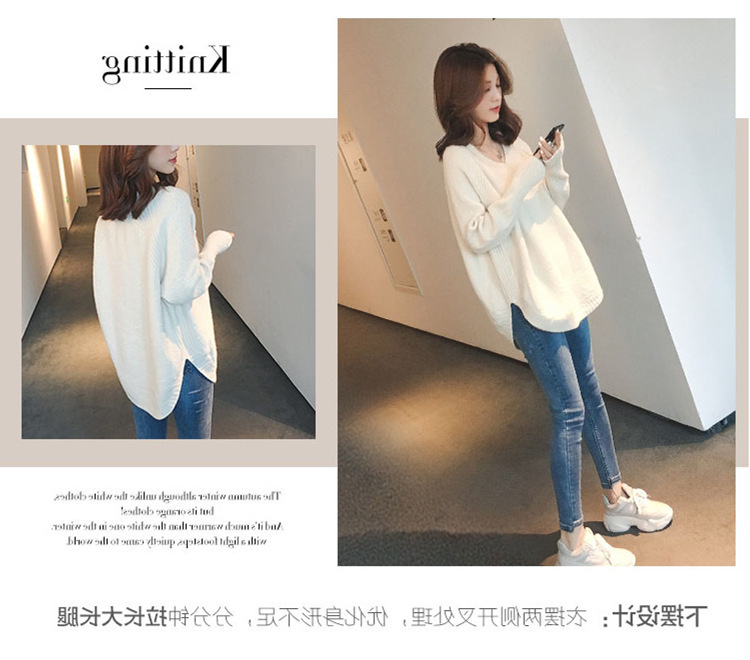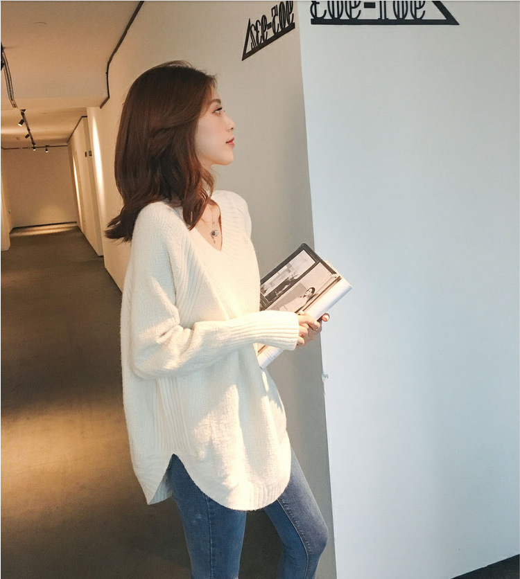 2023 가을과 겨울 새로운 세련된 하의 니트웨어 느슨한 스플릿 로우 넥 슬리밍 탑 한국 스타일 게으른 스타일 스웨터