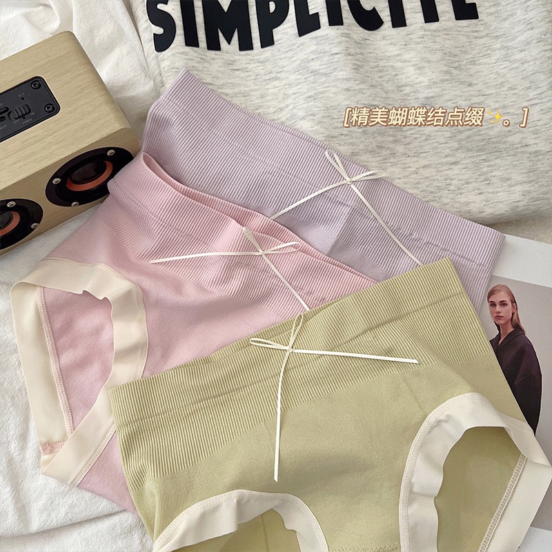 크림 활 리본 달콤한 속옷 소녀의 순수한 코튼 Crotch 높은 탄성 편안한 통기성 중간 허리 줄기스토어 가기