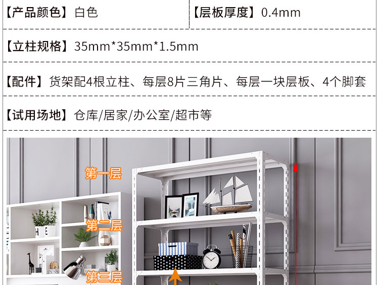 • 1.0 미터 높이 3 층 [흰색] 길이 80x 폭 30cm
