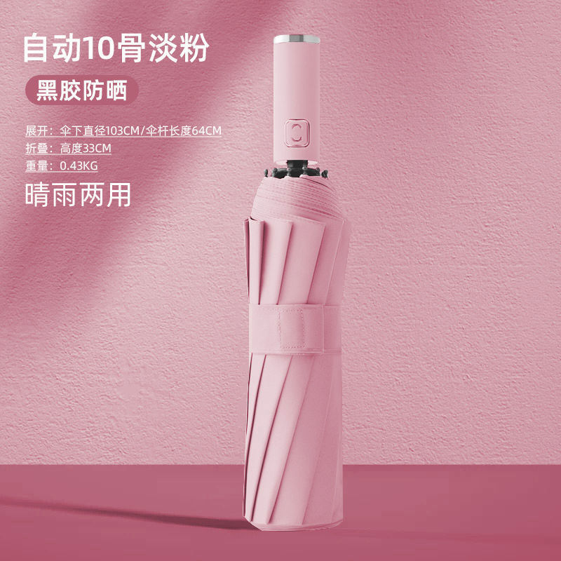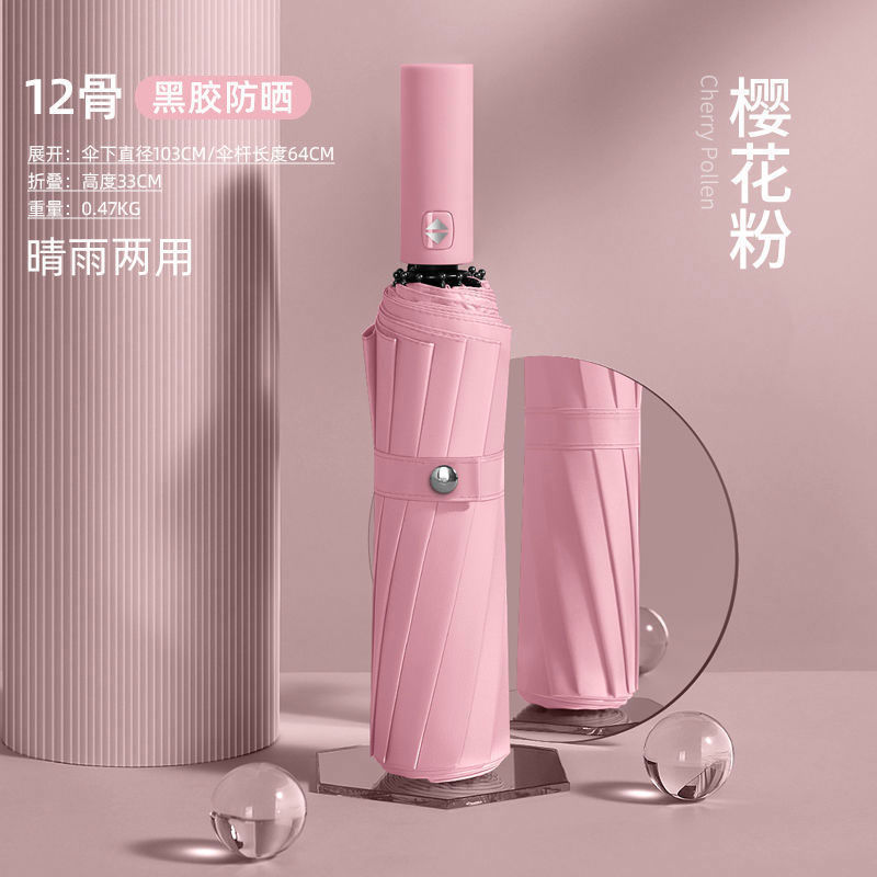 • [자동] 12 뼈 검은 고무 우산-가벼운 핑크