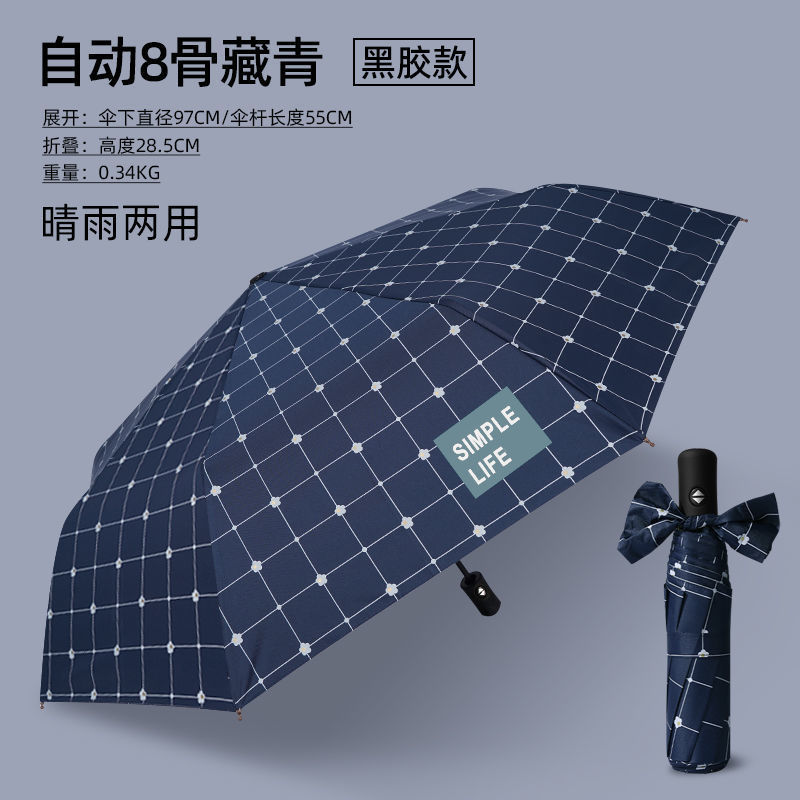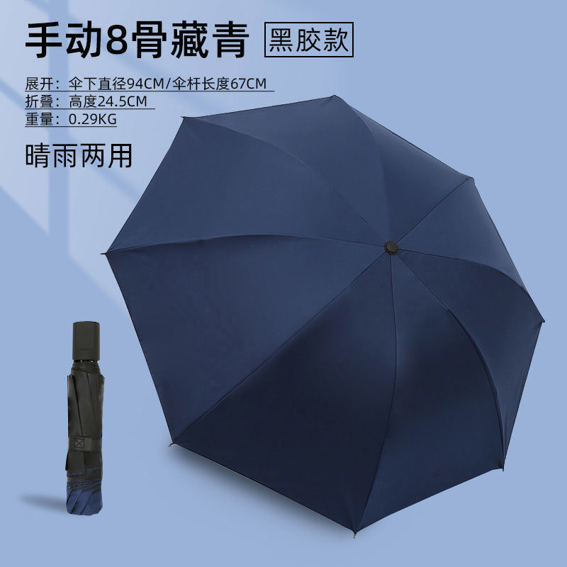 • [자동] 8 본 블랙 고무 우산-간단한 다크 블루
