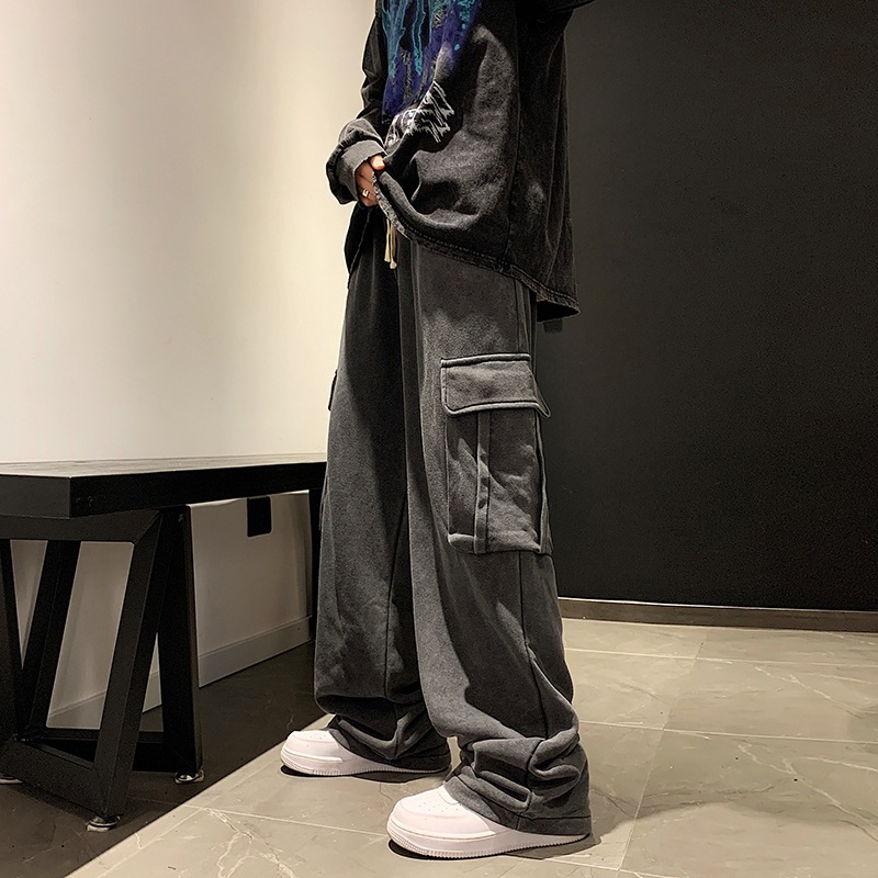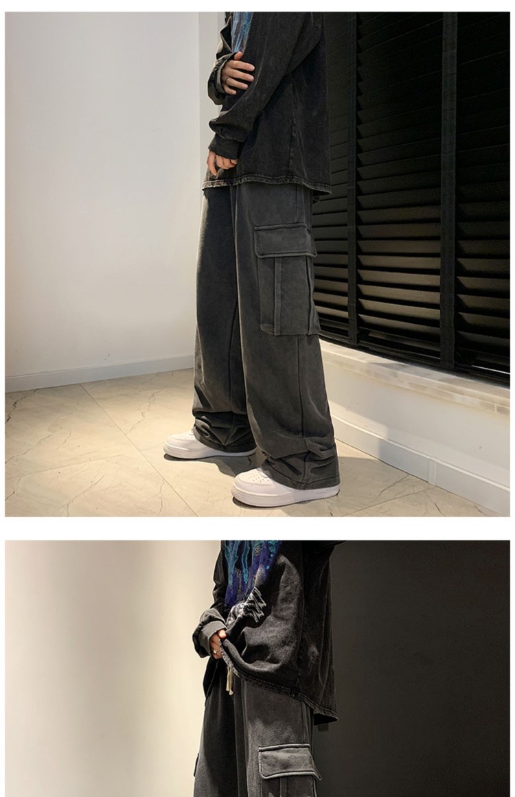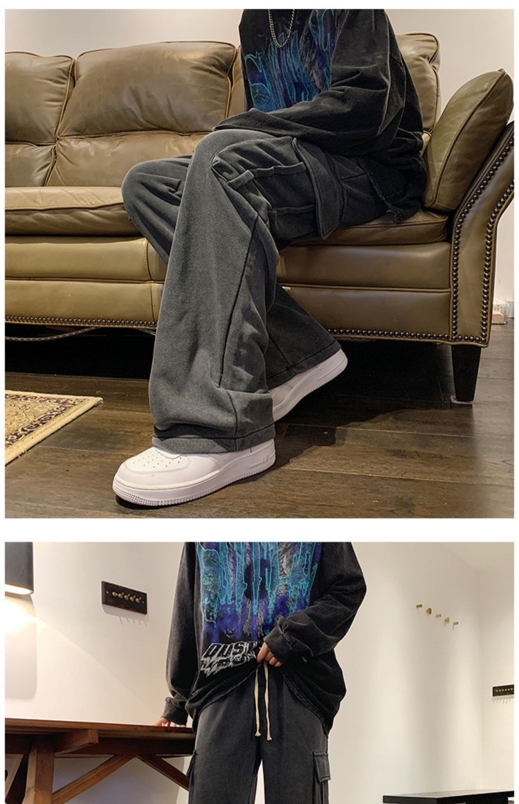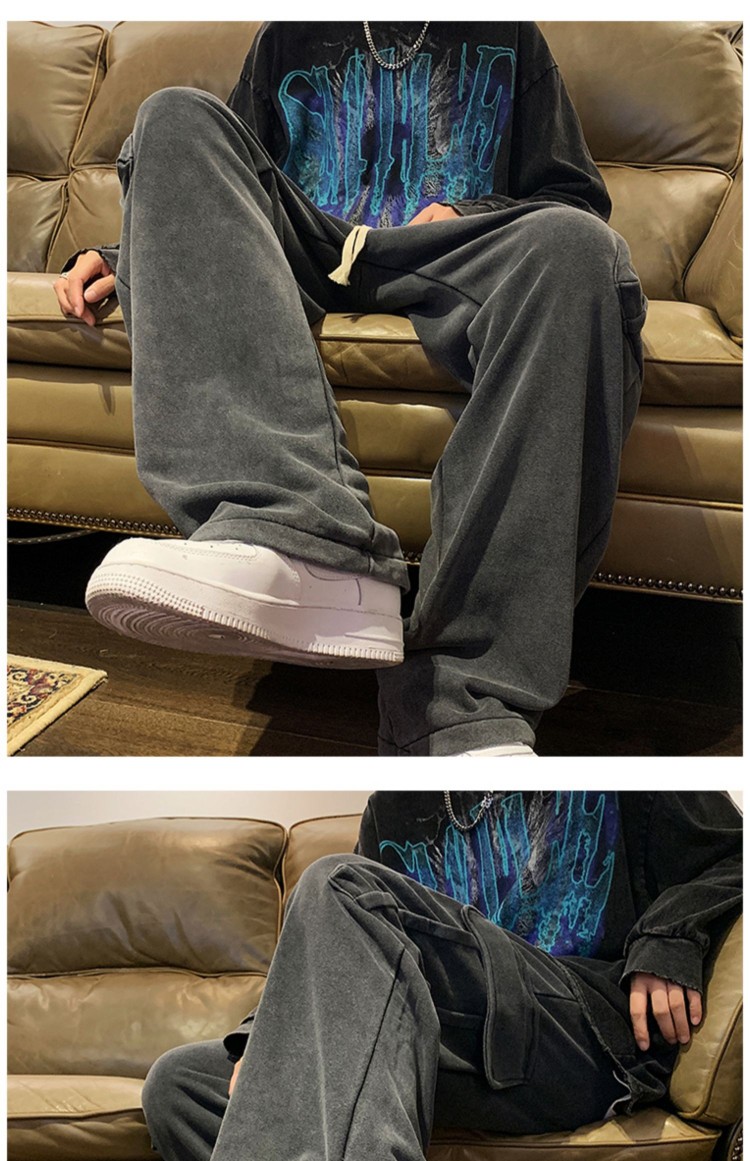 重磅水洗做旧休闲裤秋冬季美式复古工装裤ins潮牌宽松直筒男裤子