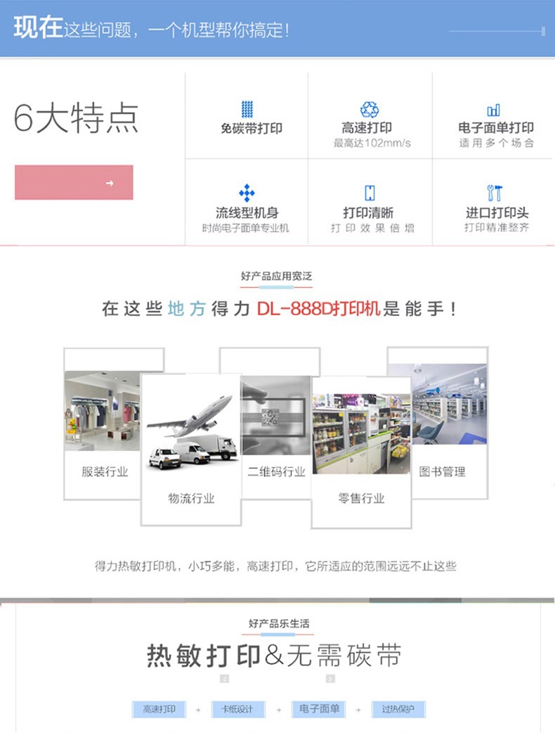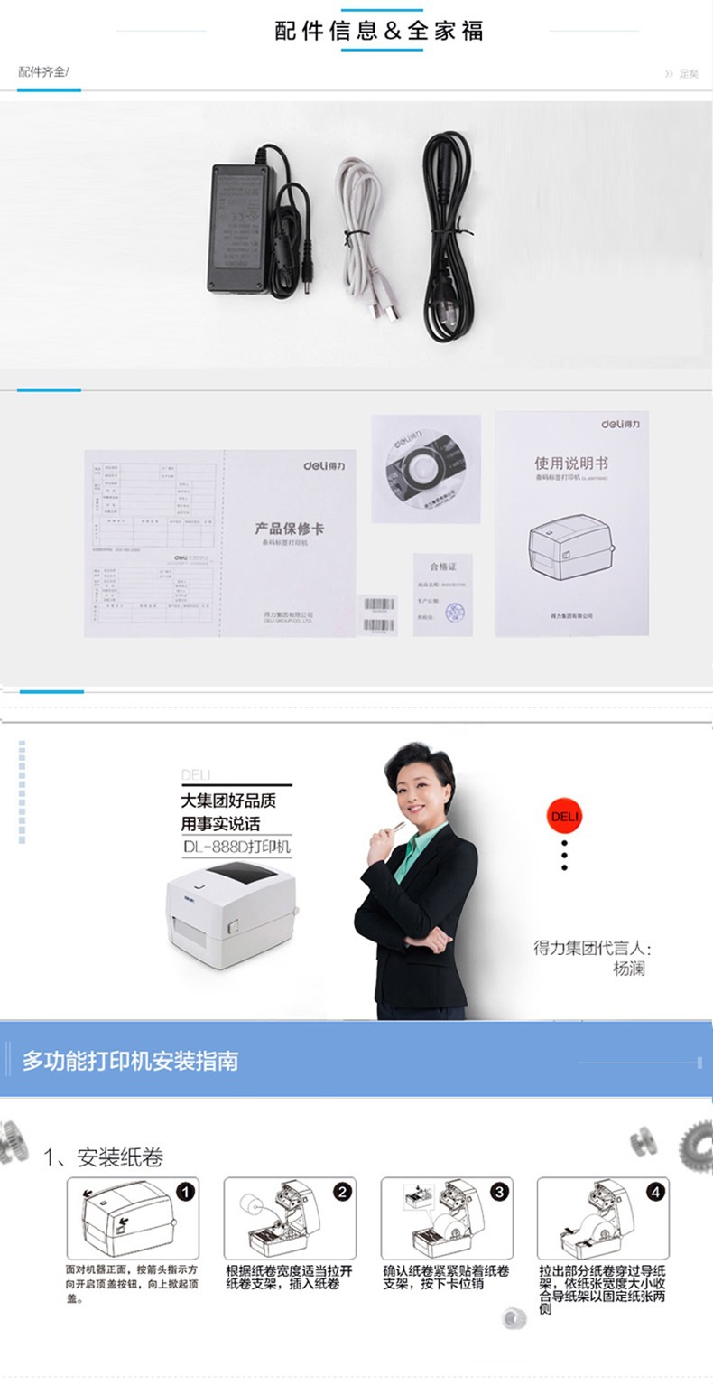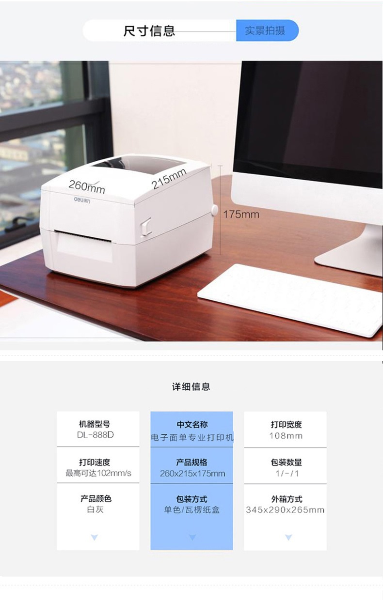델리 DL-888B/888D/750W 열 라벨 프린터 익스프레스 단면 단일 바코드 라벨 프린터