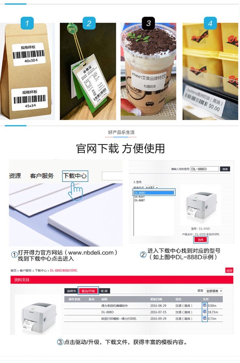 델리 DL-888B/888D/750W 열 라벨 프린터 익스프레스 단면 단일 바코드 라벨 프린터스토어 가기