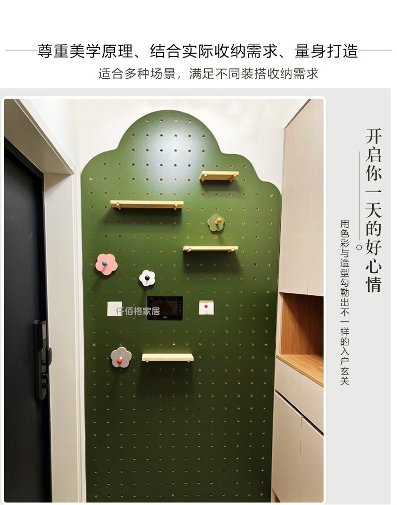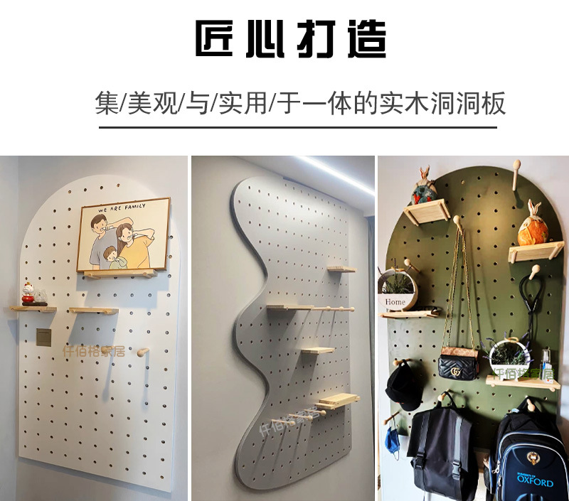 에메랄드 단단한 나무 구멍 보드 스토리지 랙 나무 거실 수납 파티션 벽걸이 침실 마감 디스플레이 홈