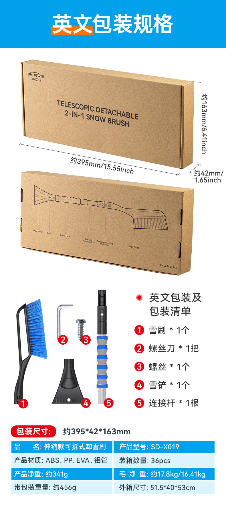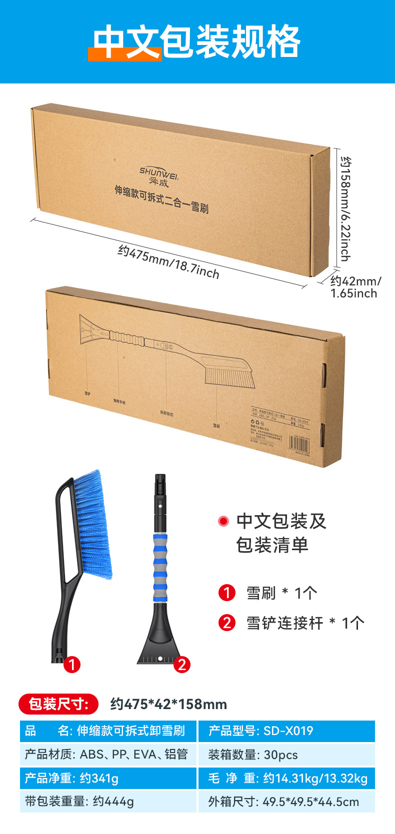 Shunwei 자동차 제설 삽 스노우 브러쉬 겨울 청소 도구 및 용품 자동차 얼음 제거 삽 투인원 텔레스코픽 스노우 삽