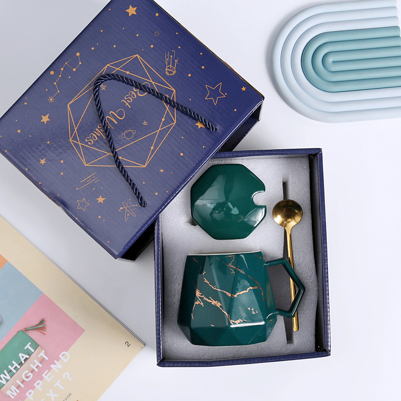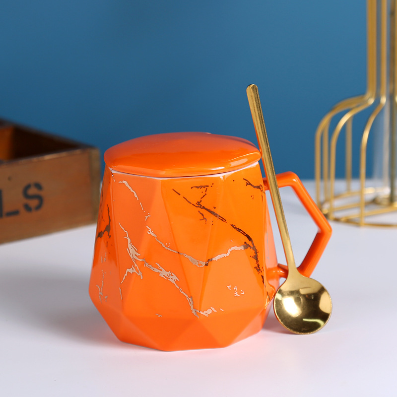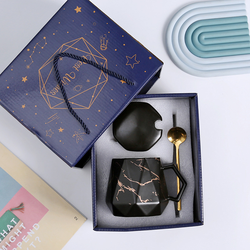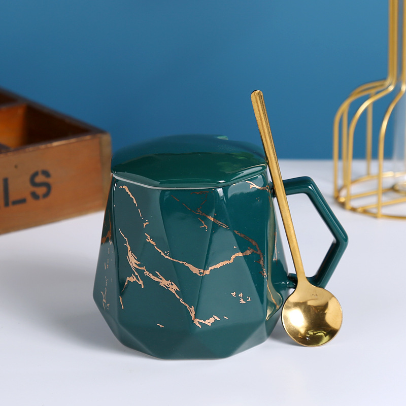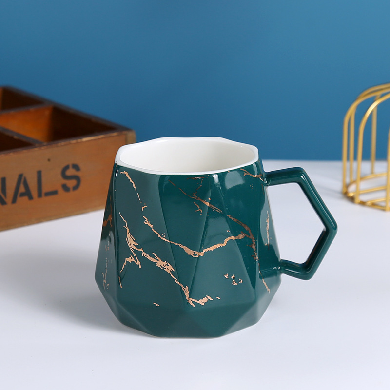 다이아몬드 머그 세라믹 물 컵 유럽식 커피 컵 개인 선물 플래시 패턴 홈 오피스 컵스토어 가기