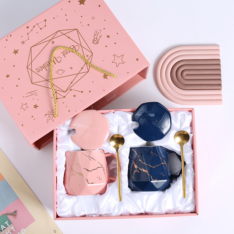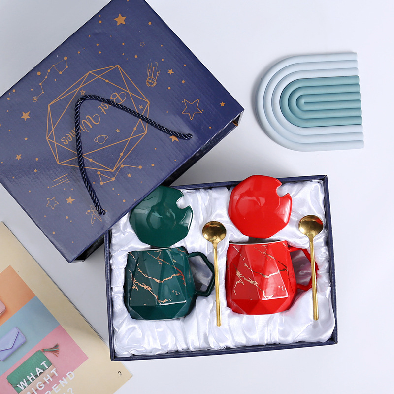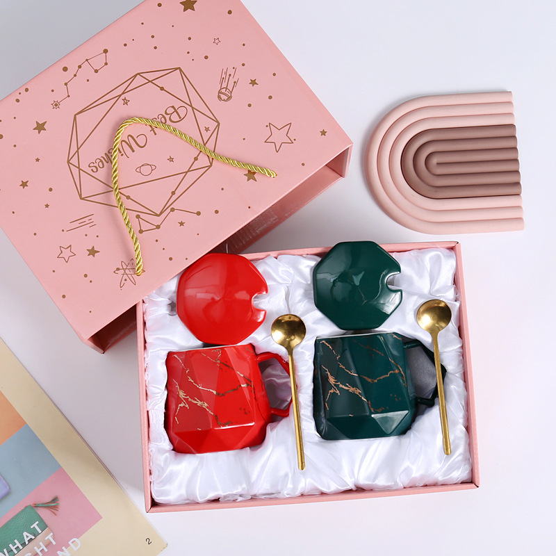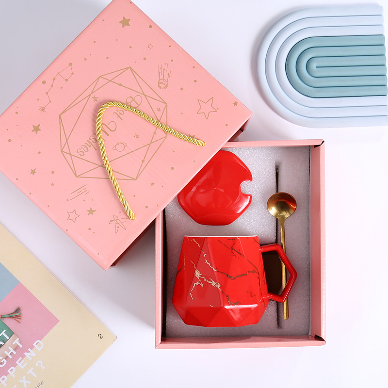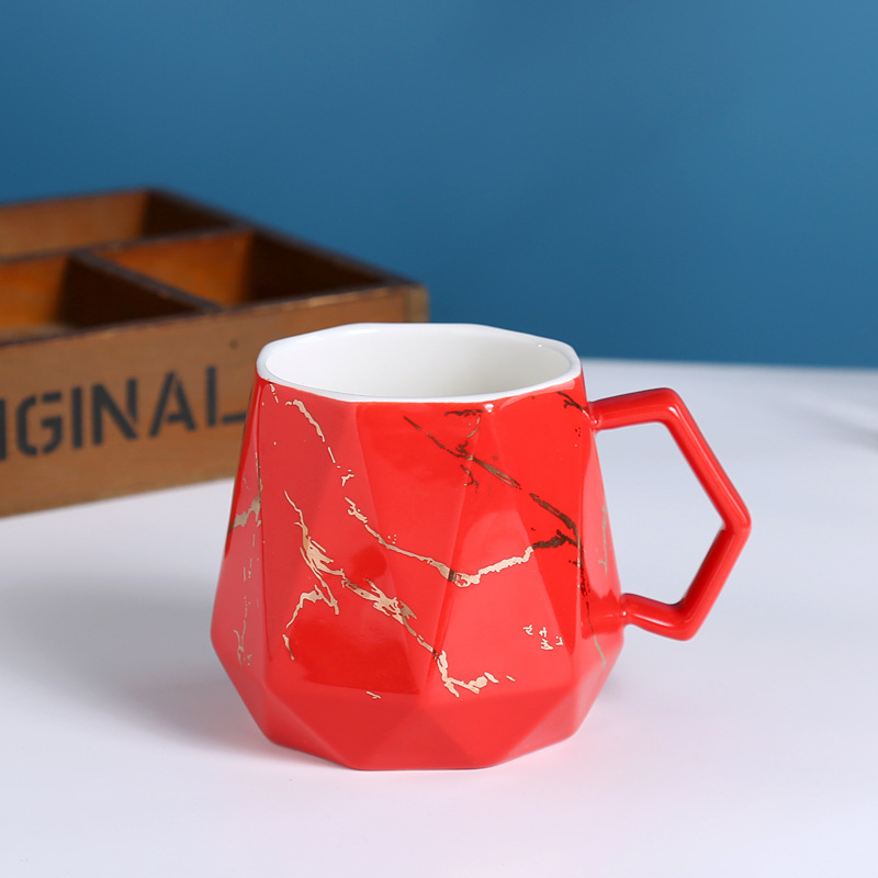 다이아몬드 머그 세라믹 물 컵 유럽식 커피 컵 개인 선물 플래시 패턴 홈 오피스 컵