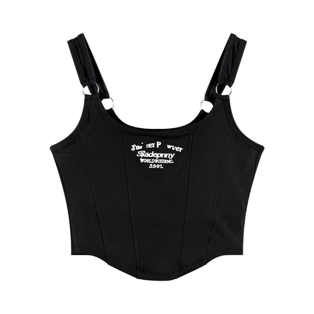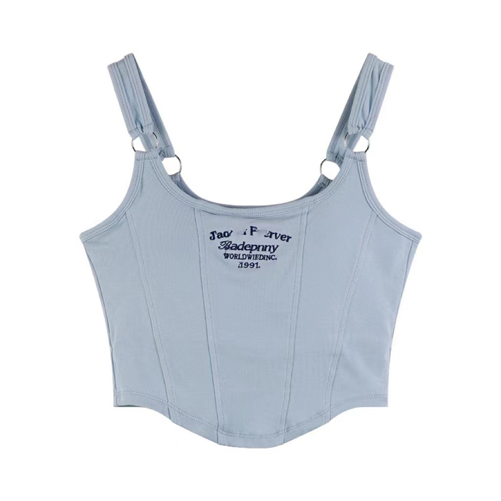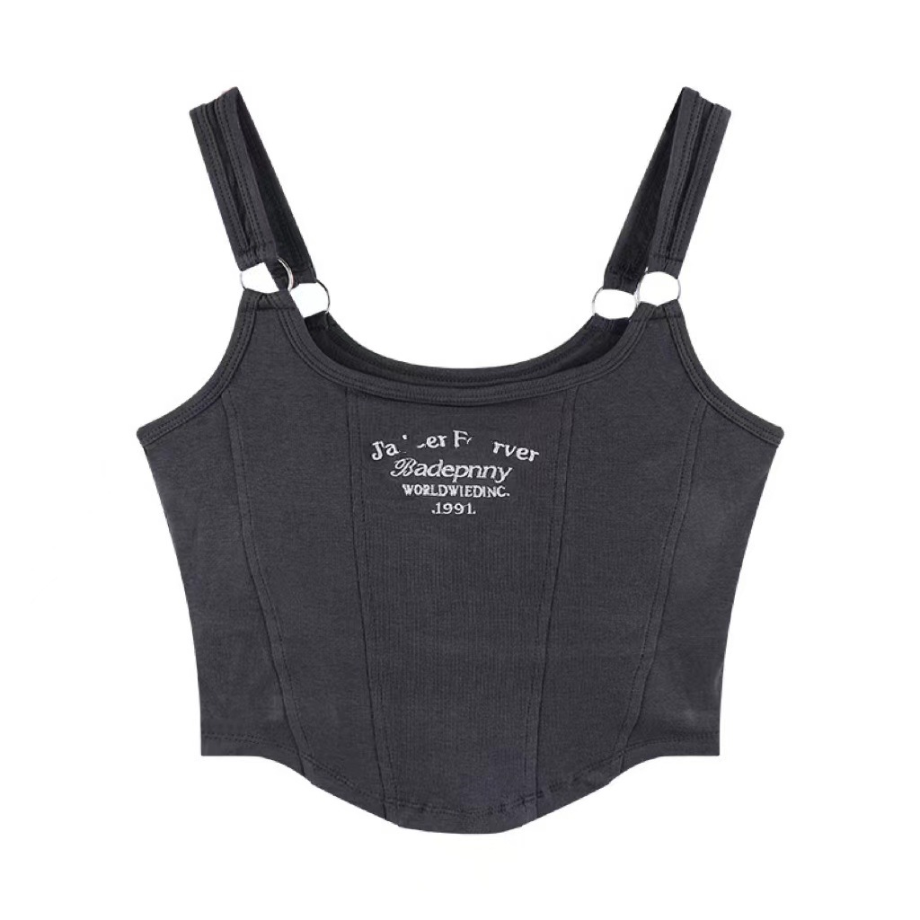 순수한 욕망 편지 자수 작은 캐미솔 여성용 내부 면 향신료 소녀 착용 슬림핏 짧은 메쉬 적외선 착용 탑