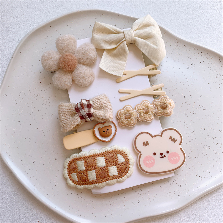 새로운 우유 커피 봉제 꽃 머리핀 어린이 귀여운 만화 곰 머리핀 어린 소녀 앞머리 부러진 머리 옆 클립