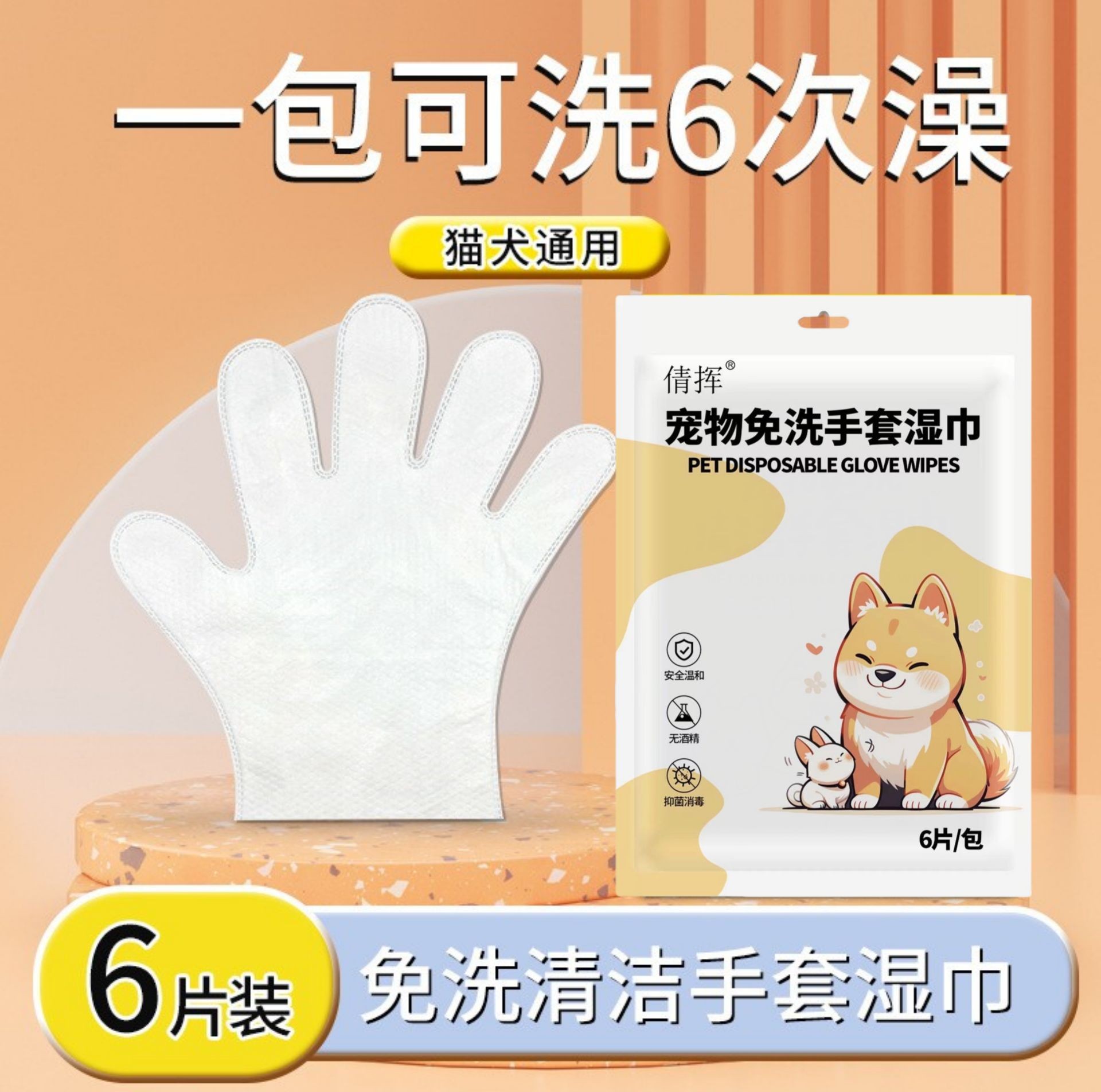• 애완동물 일회용 장갑 물티슈 1팩(6개)