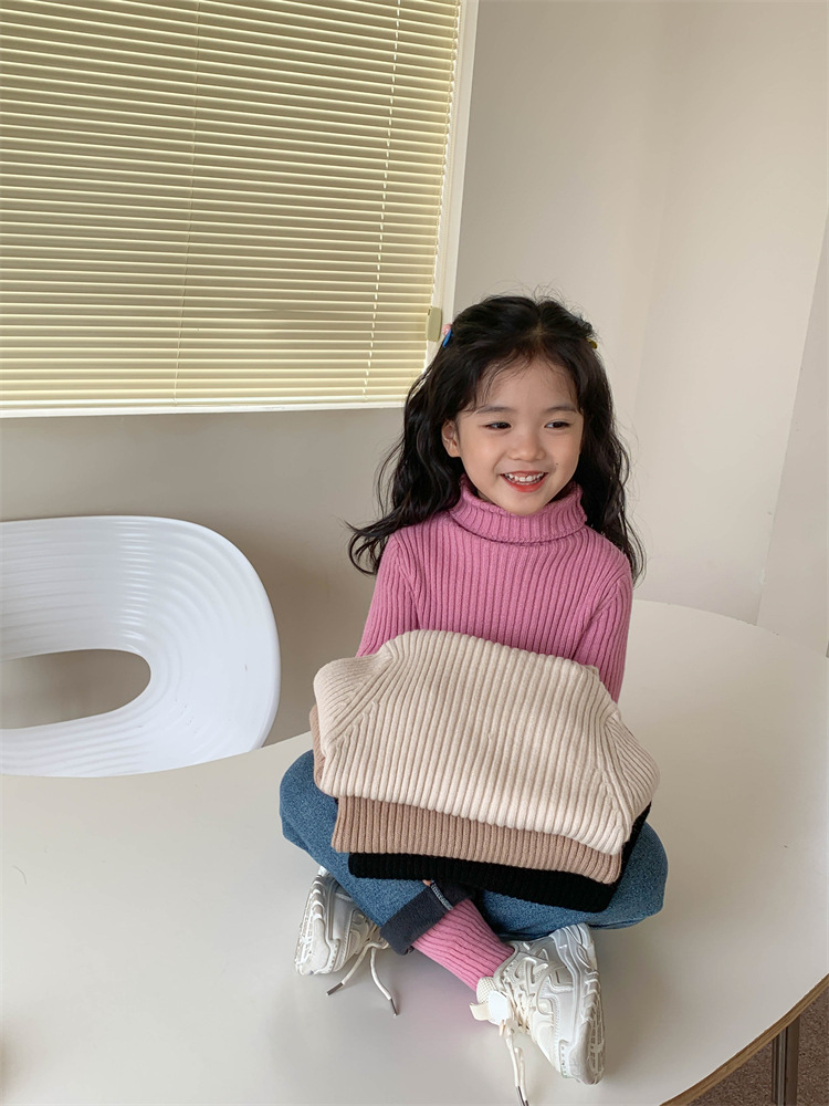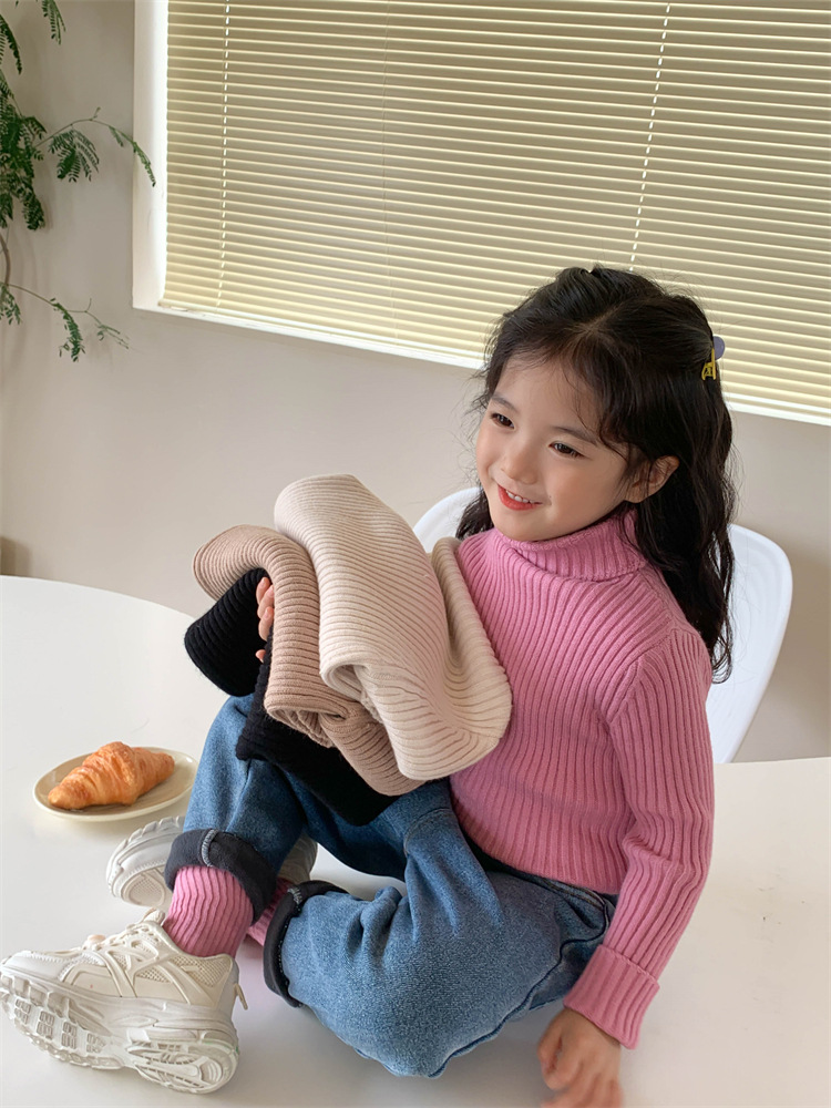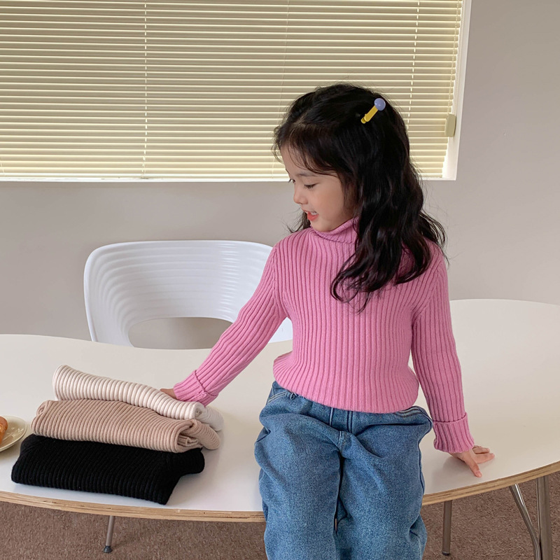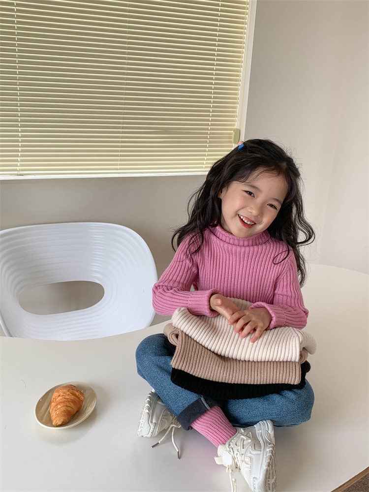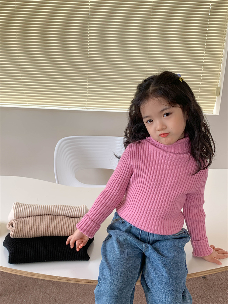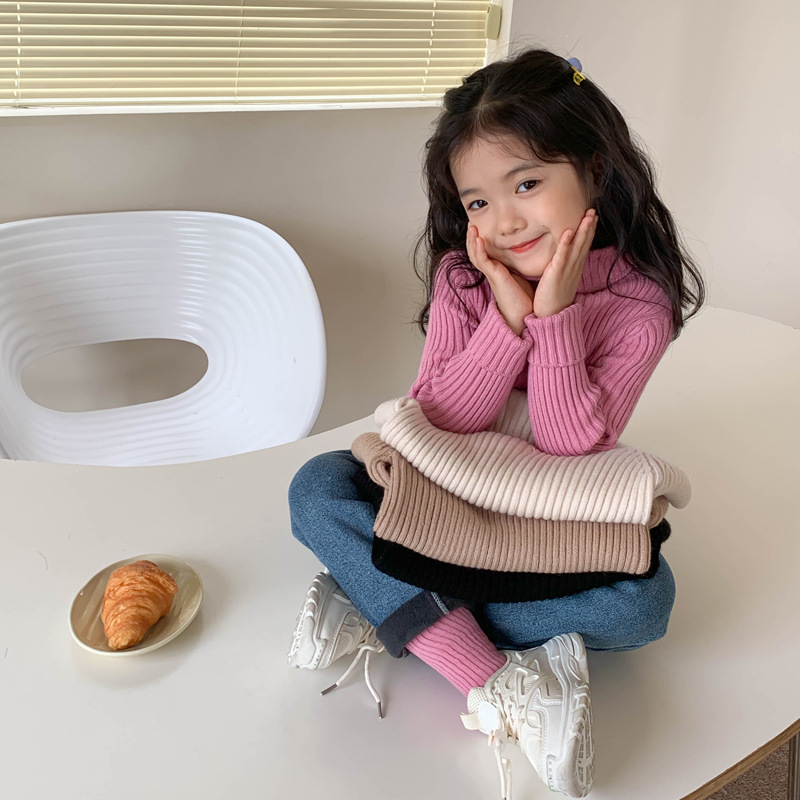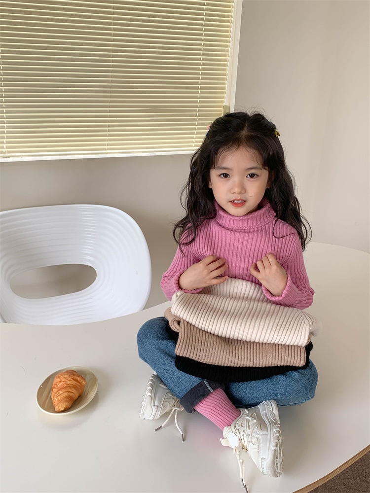여아 스웨터 2022 가을 겨울 새로운 아동복 한국식 하이 칼라 울 베이스 셔츠 어린이 올매치 탑스토어 가기