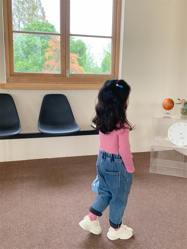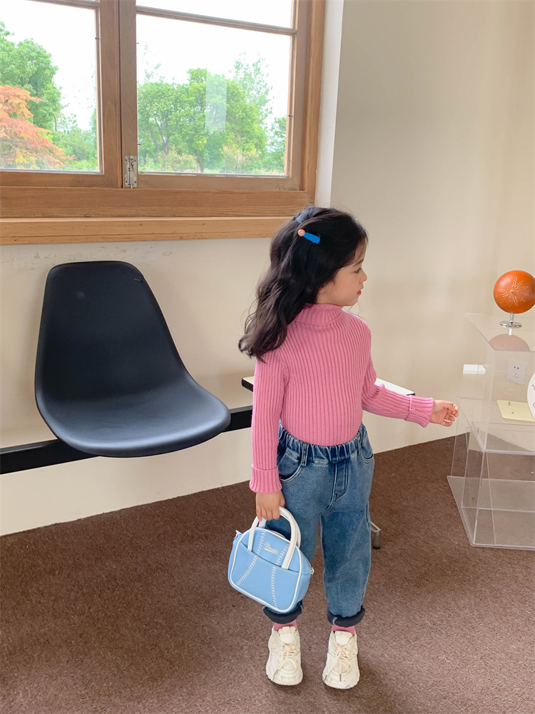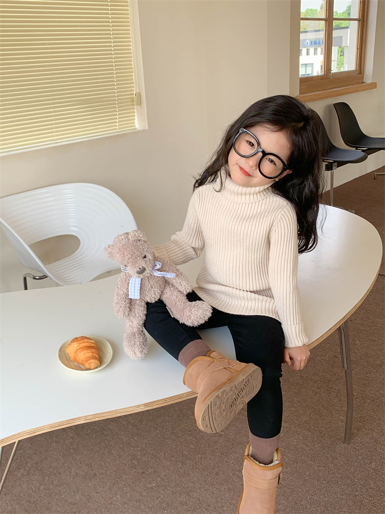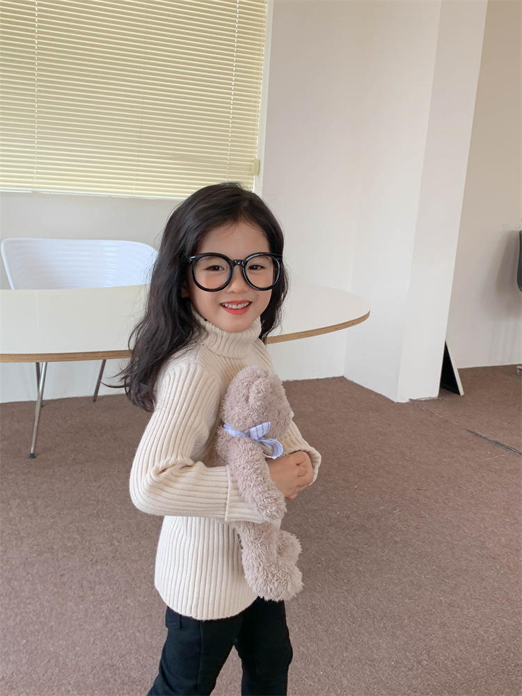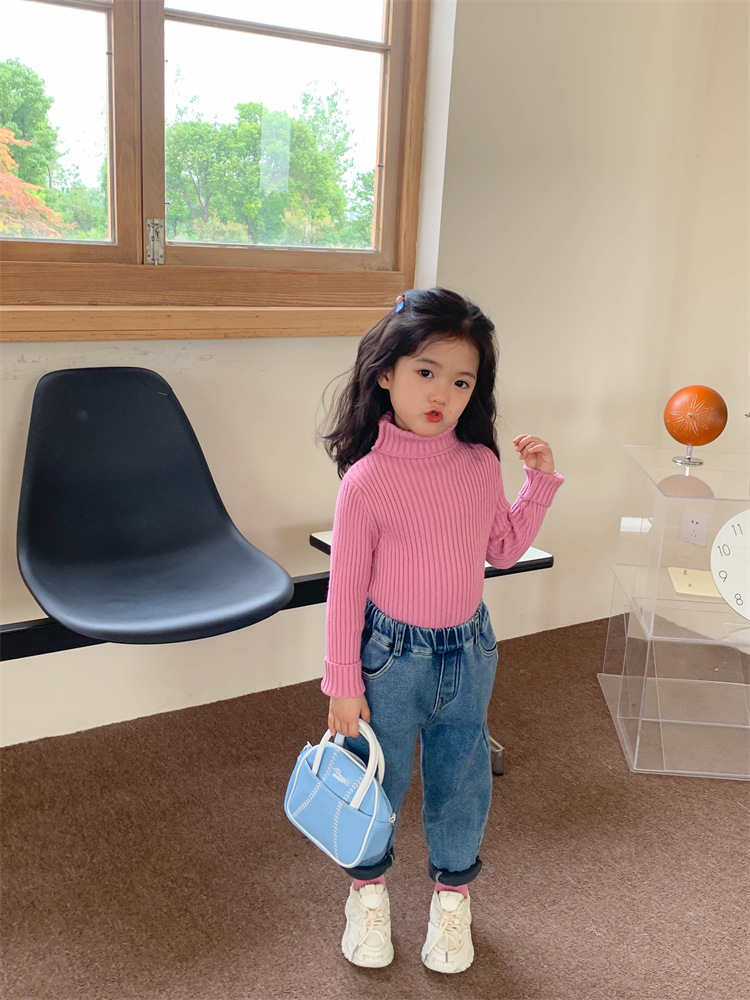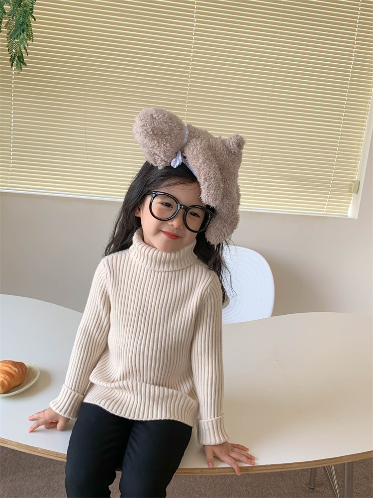 여아 스웨터 2022 가을 겨울 새로운 아동복 한국식 하이 칼라 울 베이스 셔츠 어린이 올매치 탑스토어 가기