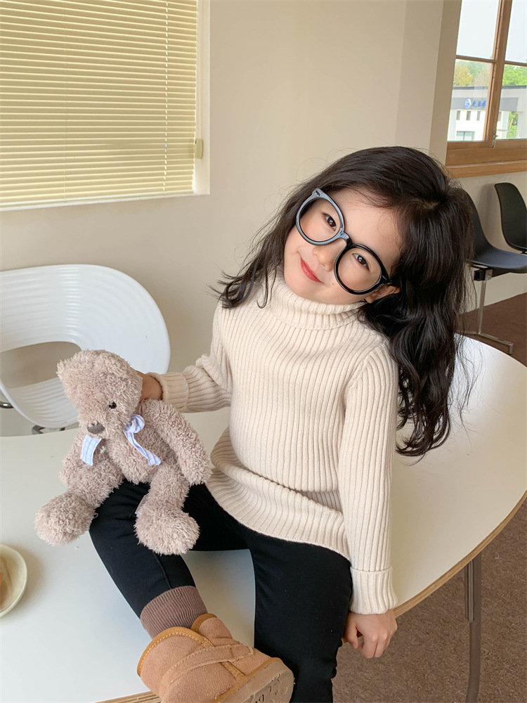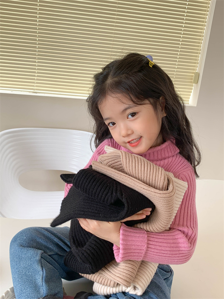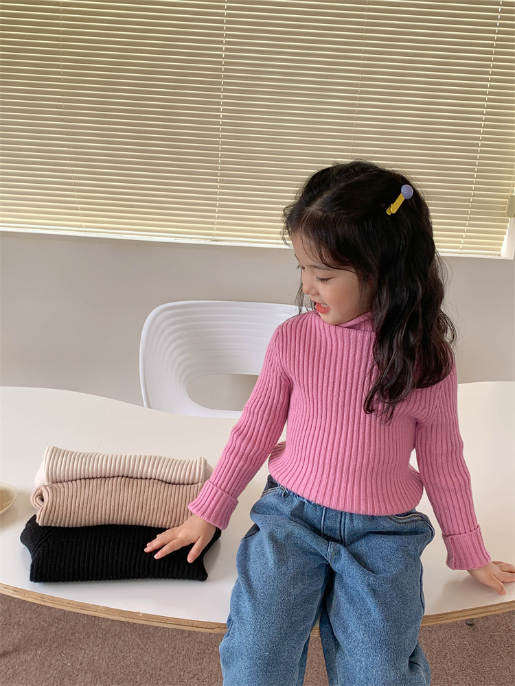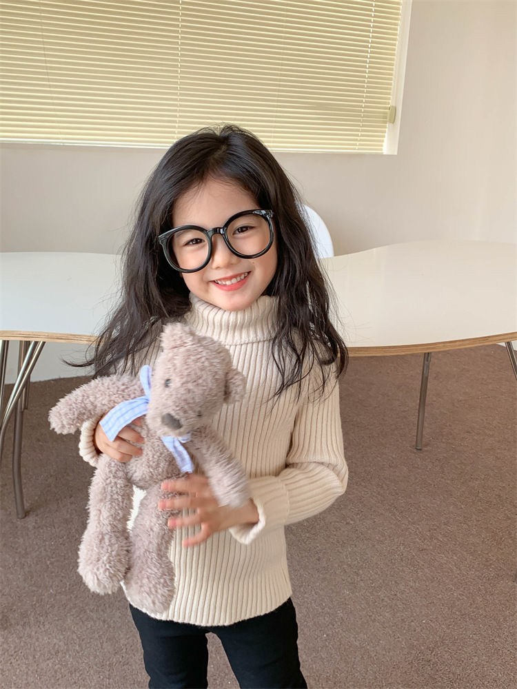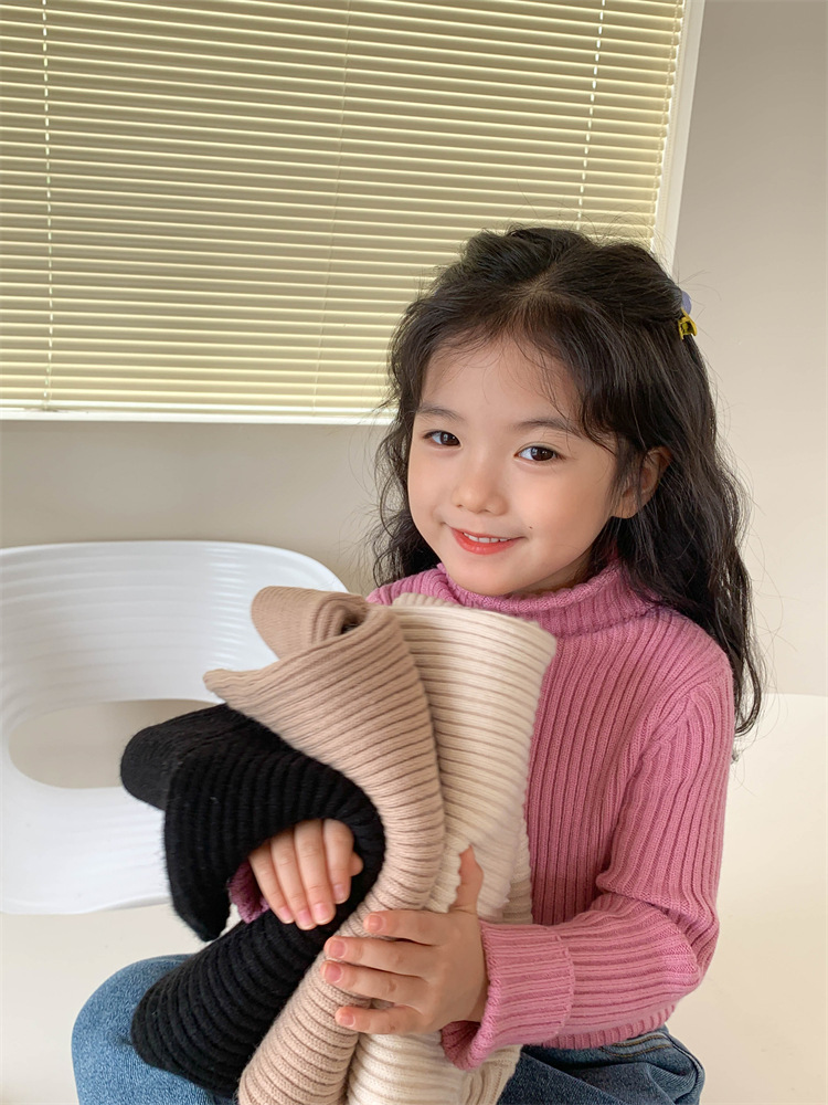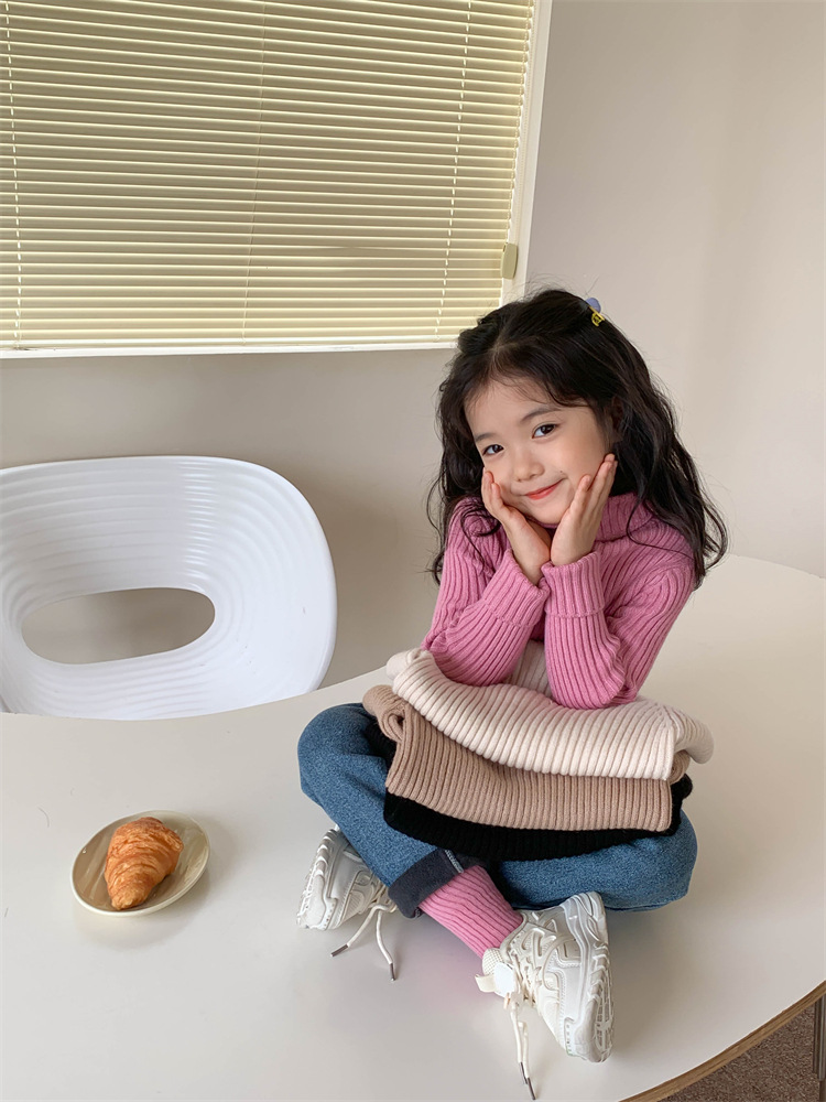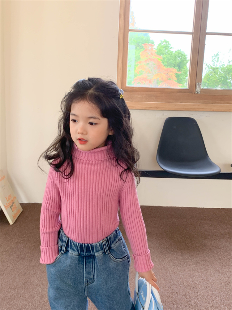 여아 스웨터 2022 가을 겨울 새로운 아동복 한국식 하이 칼라 울 베이스 셔츠 어린이 올매치 탑