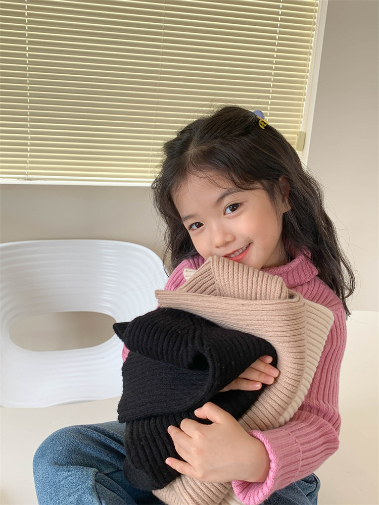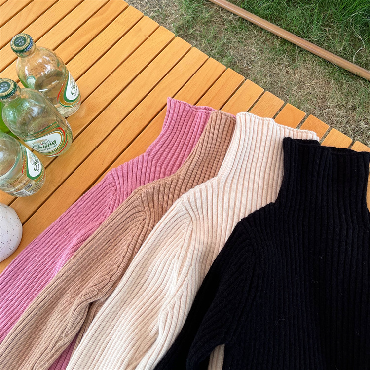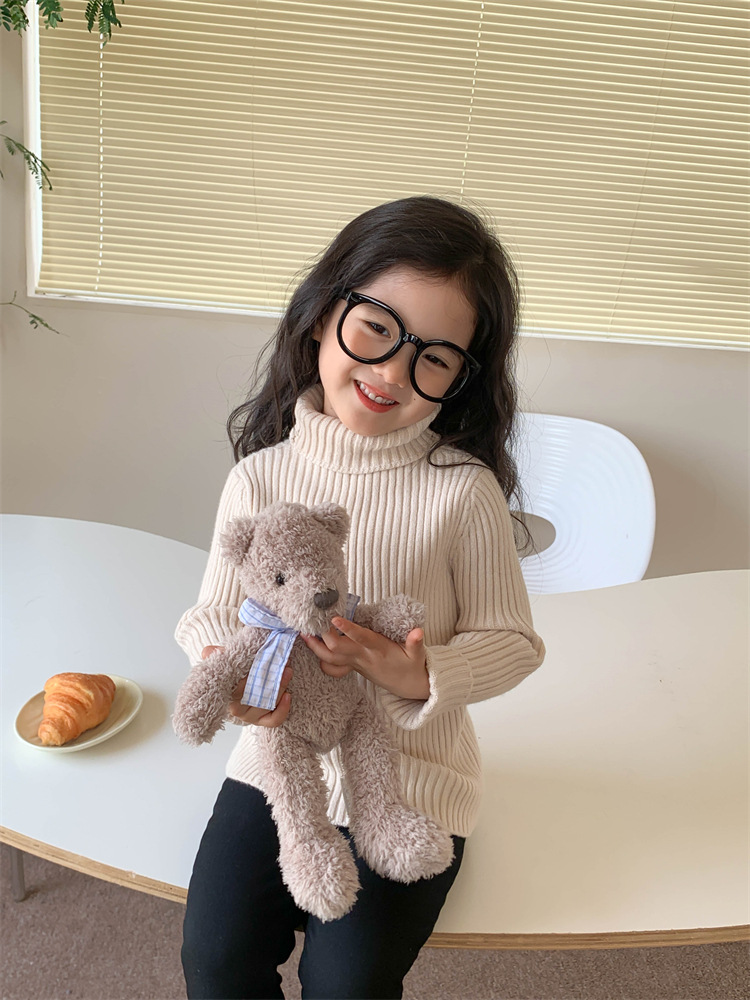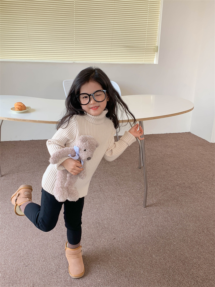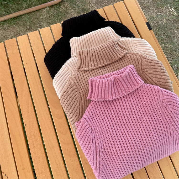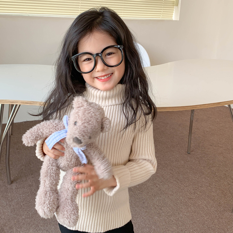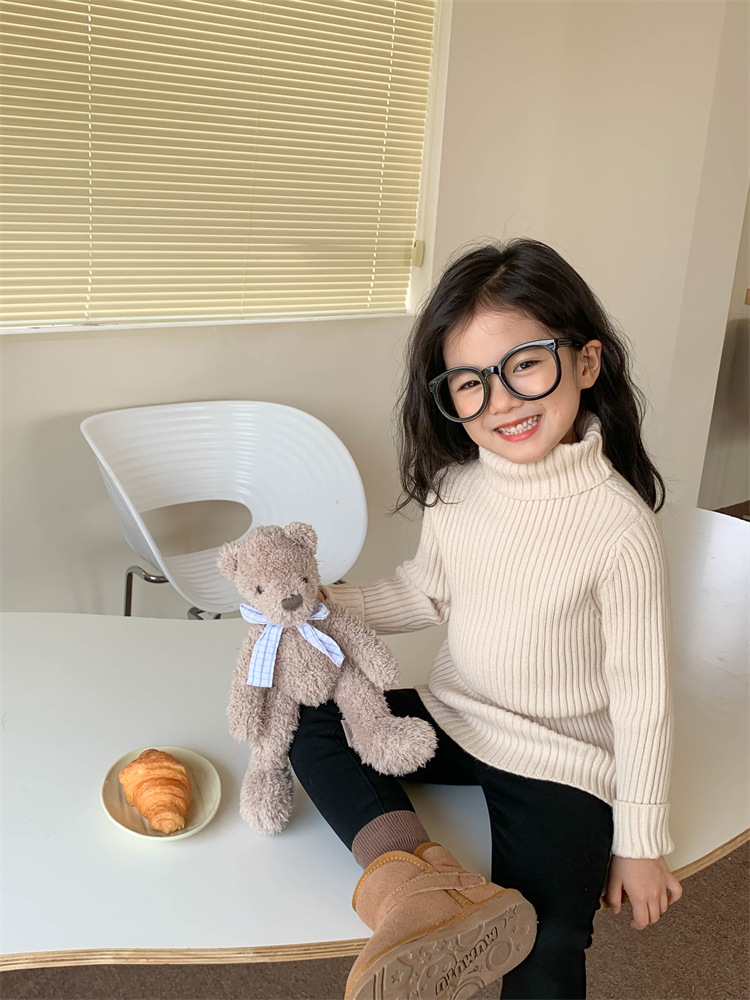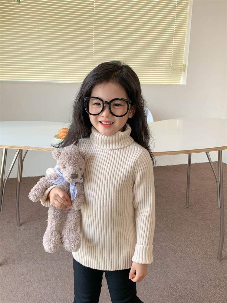 여아 스웨터 2022 가을 겨울 새로운 아동복 한국식 하이 칼라 울 베이스 셔츠 어린이 올매치 탑