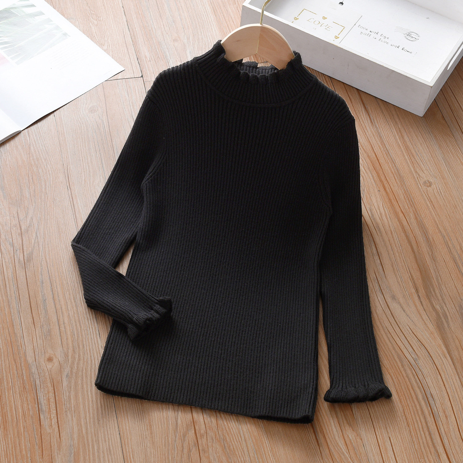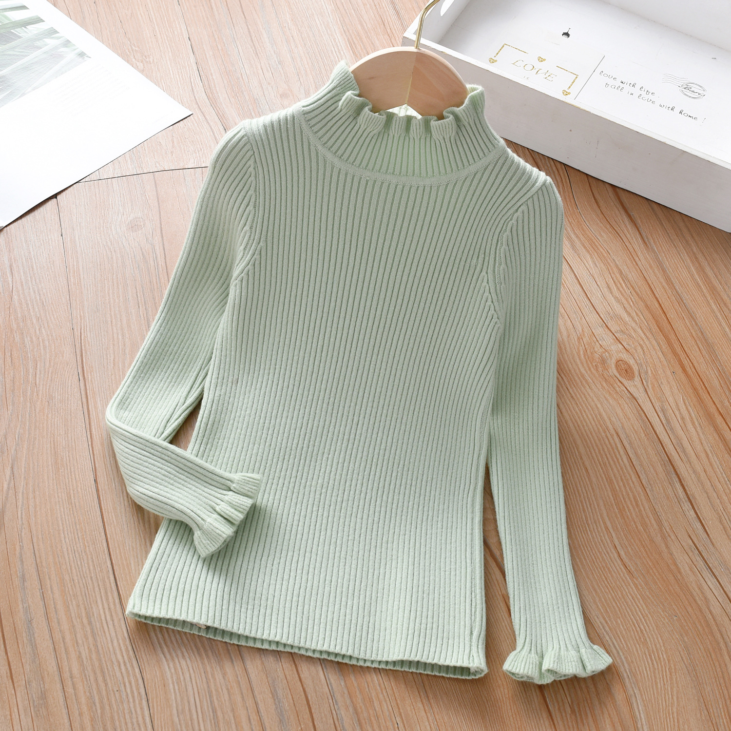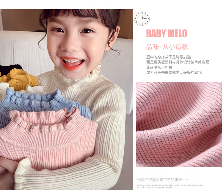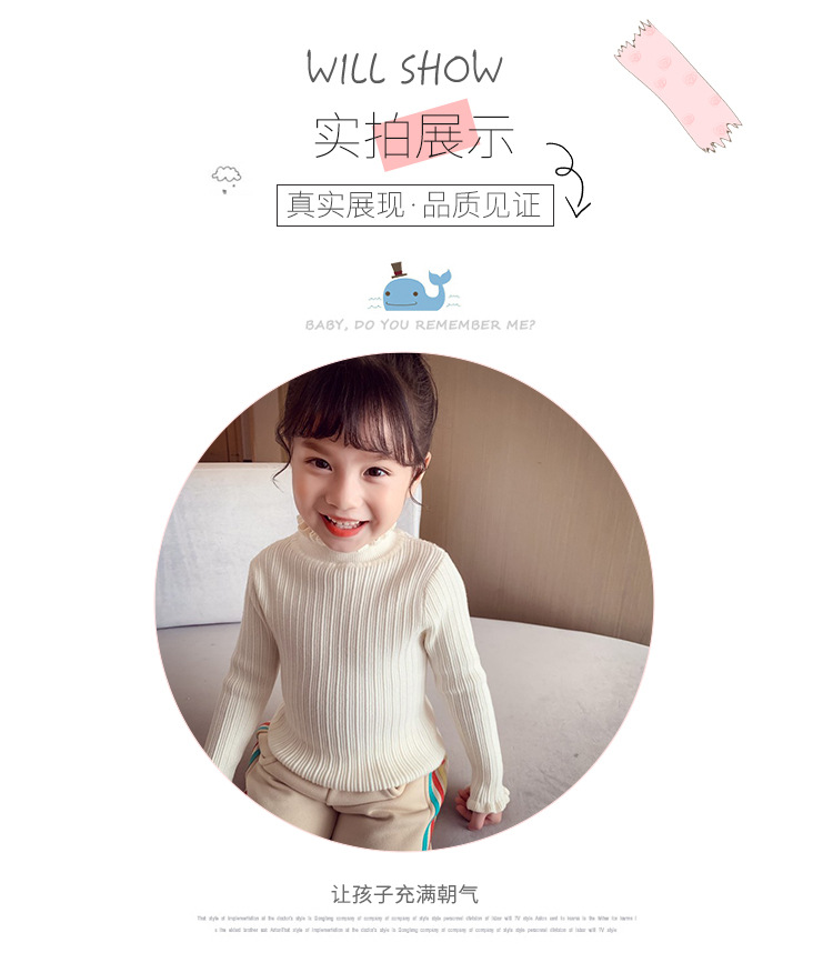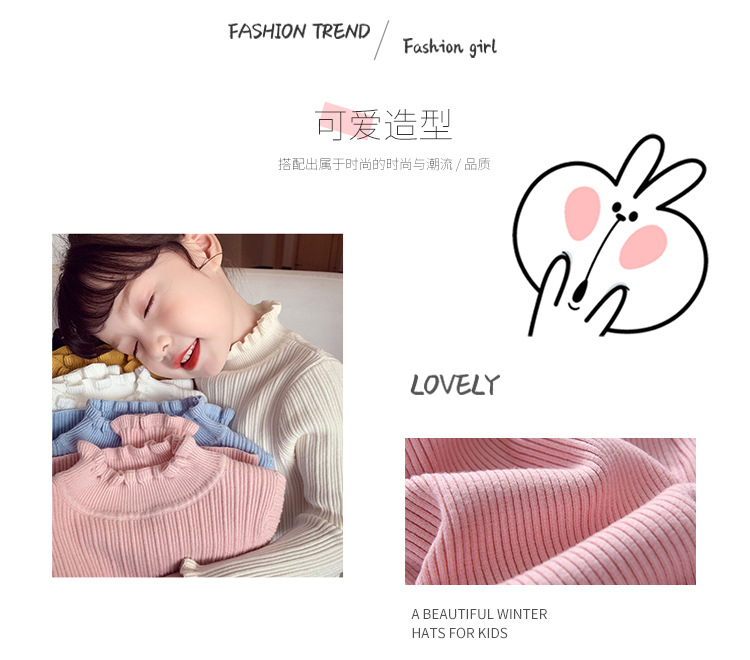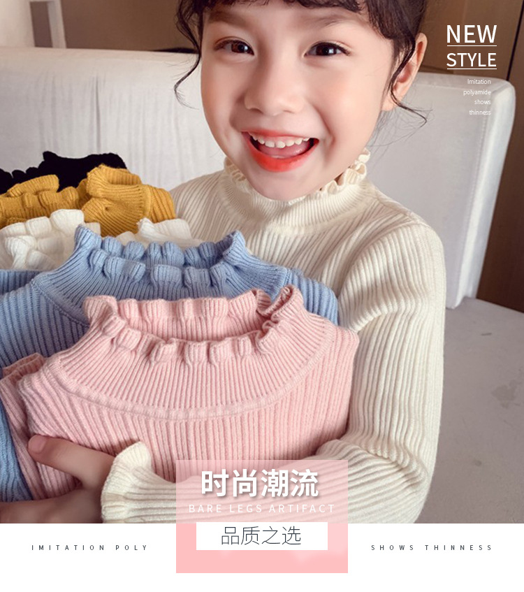 소녀 중형 터틀넥 스웨터 귀 테두리 핏 스트립베이스 코트 리틀 걸스 겨울 스웨터 니트 이너 패션 탑