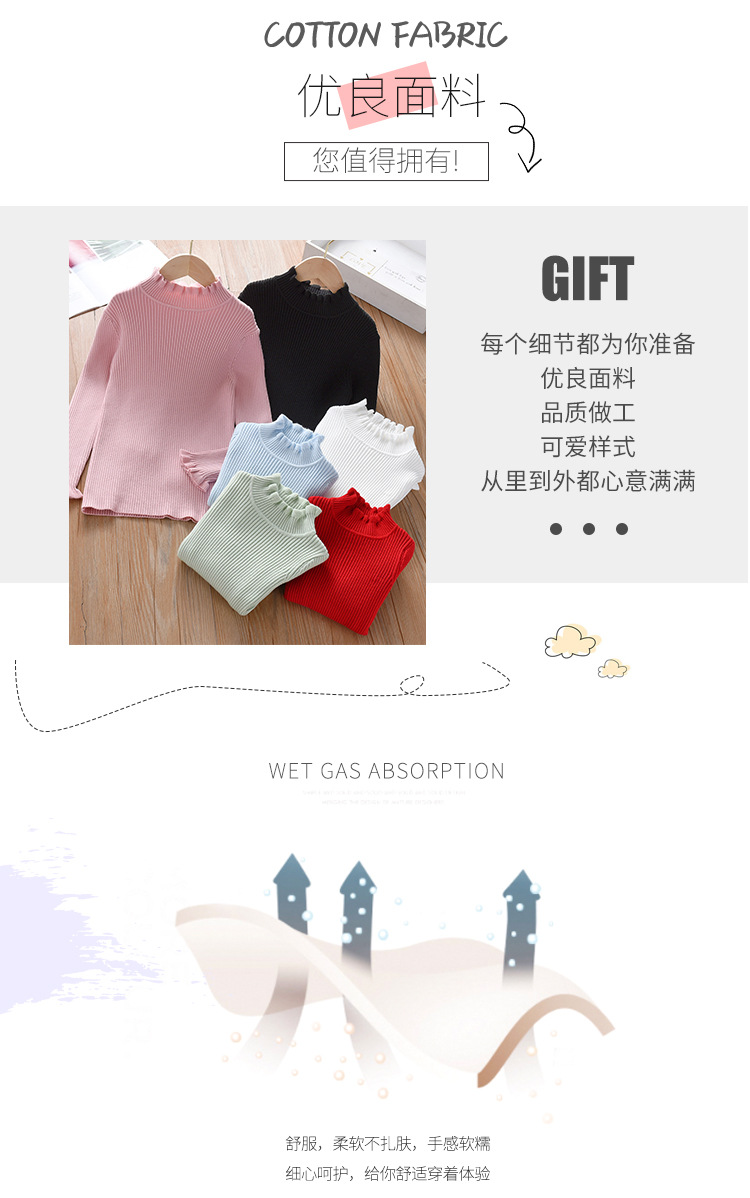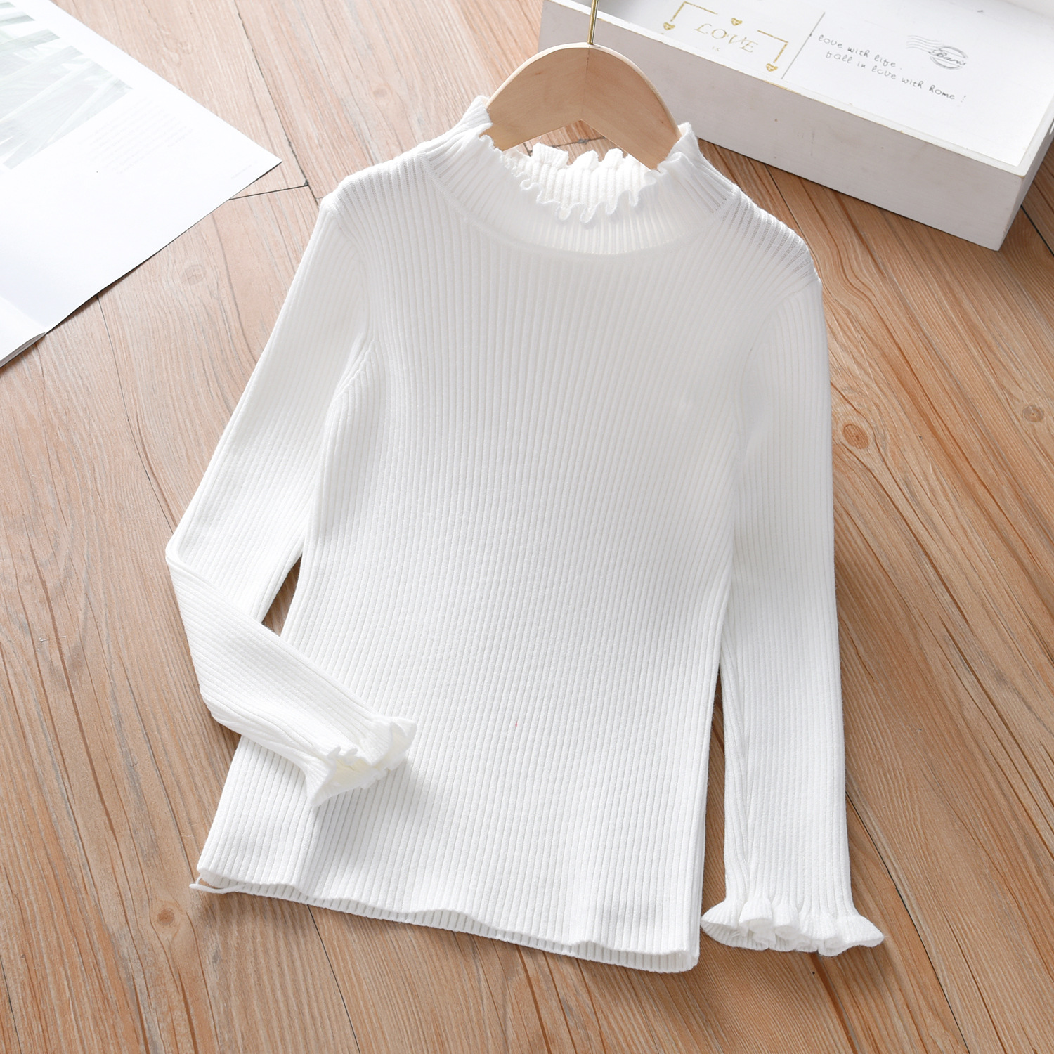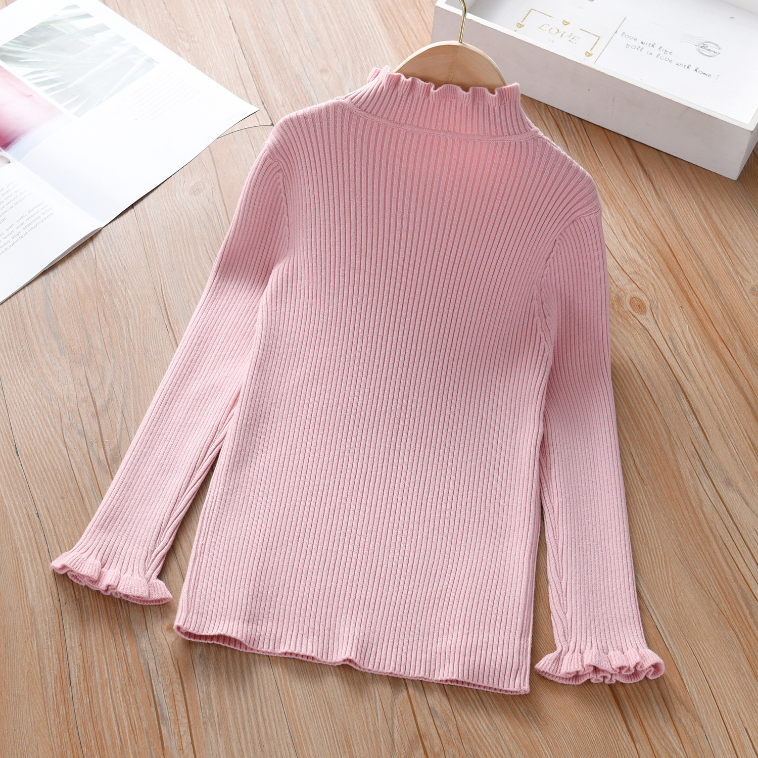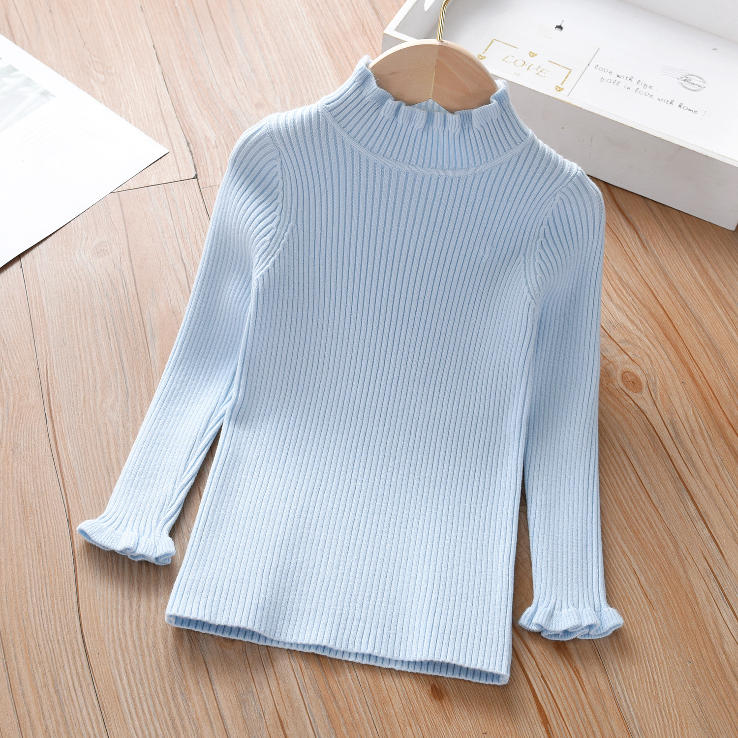 소녀 중형 터틀넥 스웨터 귀 테두리 핏 스트립베이스 코트 리틀 걸스 겨울 스웨터 니트 이너 패션 탑