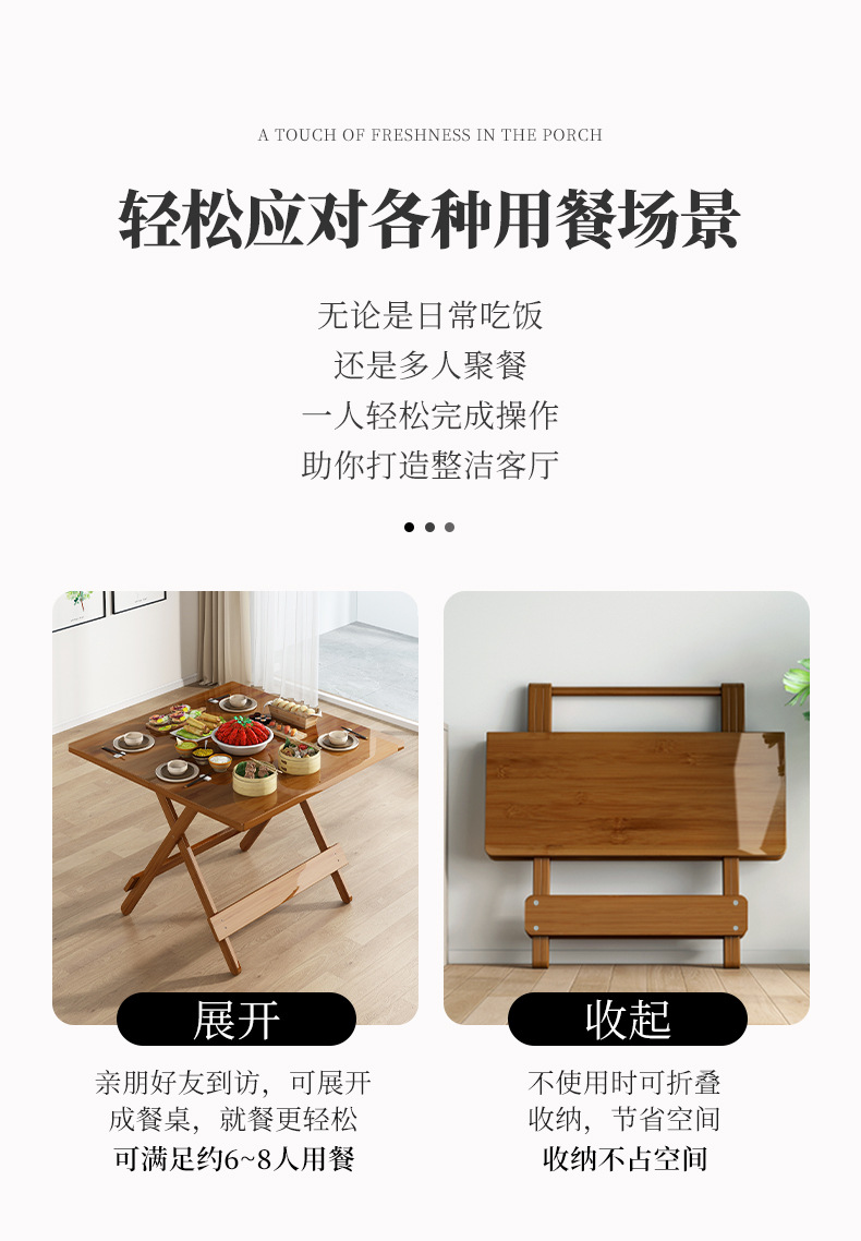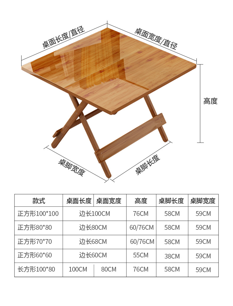 접이식 테이블 식탁 홈 다이닝 작은 아파트 스퀘어 렌탈 하우스 스톨 간단한 휴대용 야외 대나무 식탁스토어 가기