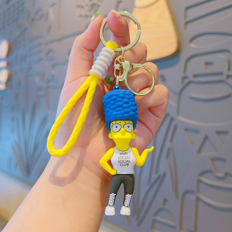 심슨 만화 실리콘 열쇠 고리 인형 귀여운 펜던트 장난감 가방 교수형 열쇠 고리 작은 보석 도매