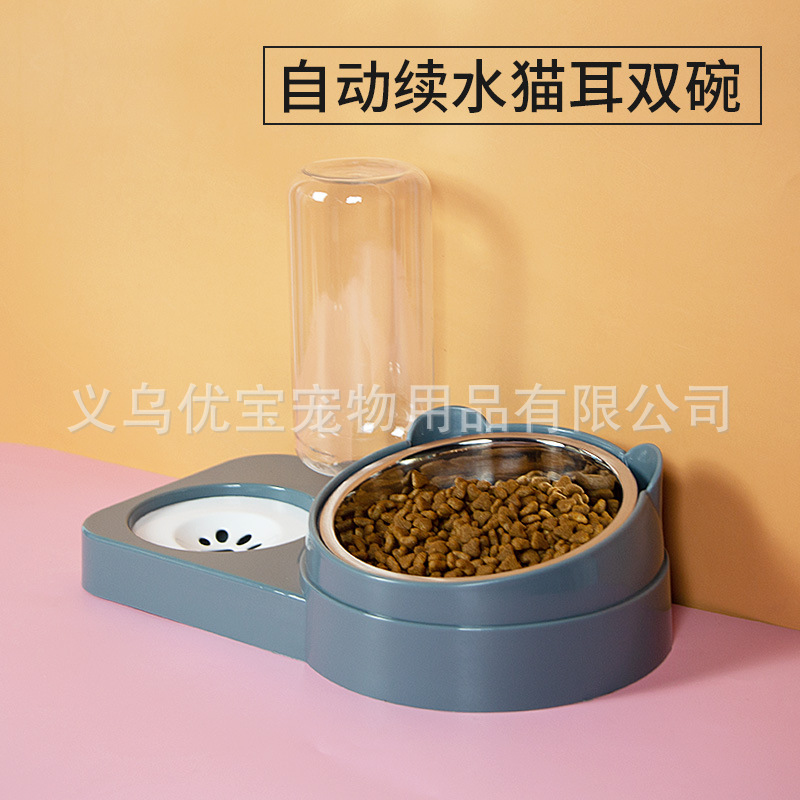 고양이 그릇 도매 더블 그릇 고양이 그릇 높은 발목 목 보호 일체형 더블 그릇 자동 스테인레스 스틸 고양이 그릇 개밥 그릇스토어 가기