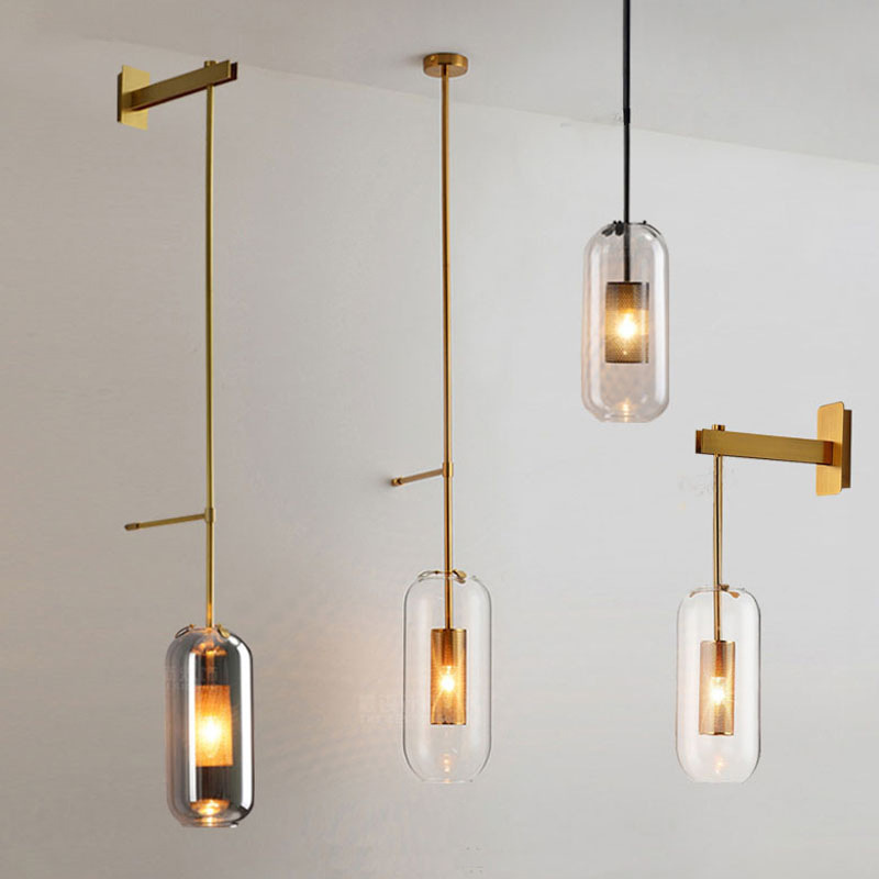 • 교수형 벽 램프 구리 막대 + 투명 유리