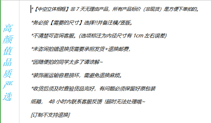 此链接是定制链接无质量问题不支持退换货,SKU标价方便顾客下单和了解每种产品大约价位。