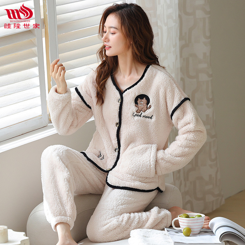 잠옷 숙녀 겨울 산호 양털 두꺼운 기모 따뜻한 카디건 플란넬 2022 새로운 패션 가정 의류스토어 가기