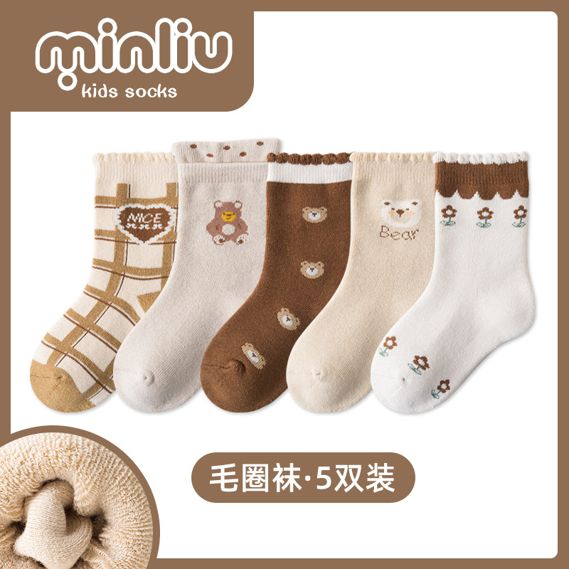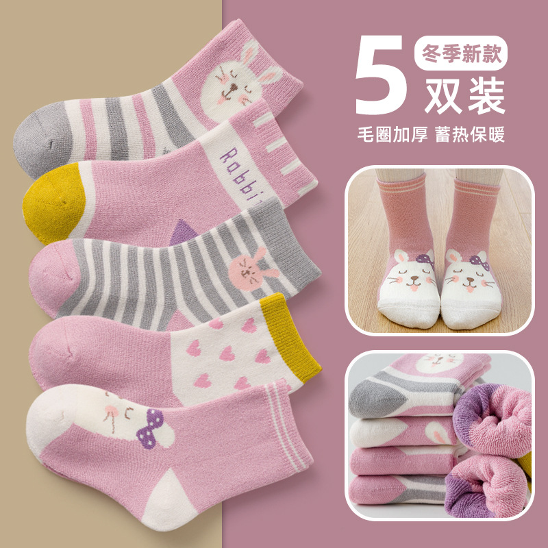 어린이 양말 도매 두꺼운 테리 따뜻한 2022 가을과 겨울 소녀 아기 양말 만화 토끼 면화 가방 긴 바지