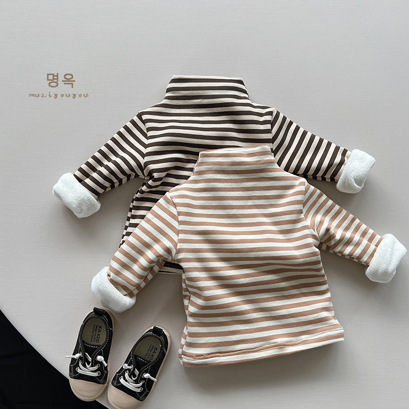 추천 겨울 바닥 ~ 스트라이프 벨벳 바닥 셔츠 2024 겨울 새로운 소년과 소녀 두꺼운 따뜻한 재킷스토어 가기