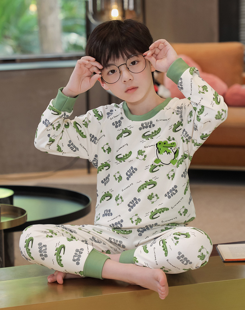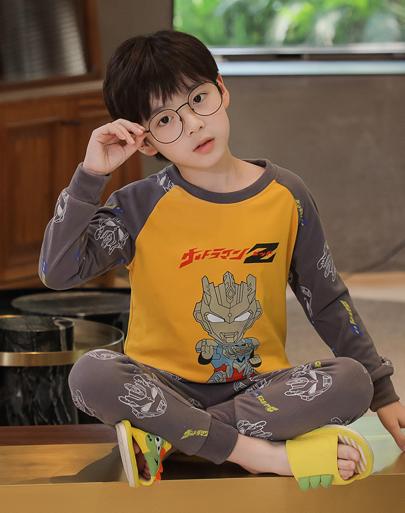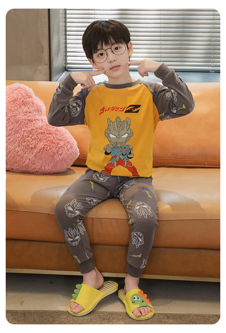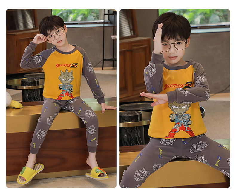 어린이 잠옷 소년 가을과 겨울 기모 긴팔 중대형 어린이 겨울 열 속옷 작은 소년의 가정 옷 세트