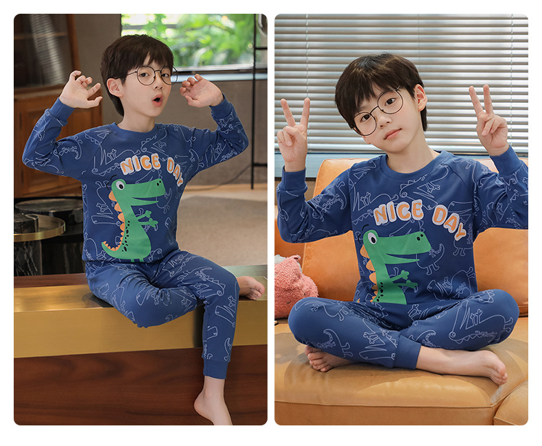 어린이 잠옷 소년 가을과 겨울 기모 긴팔 중대형 어린이 겨울 열 속옷 작은 소년의 가정 옷 세트스토어 가기