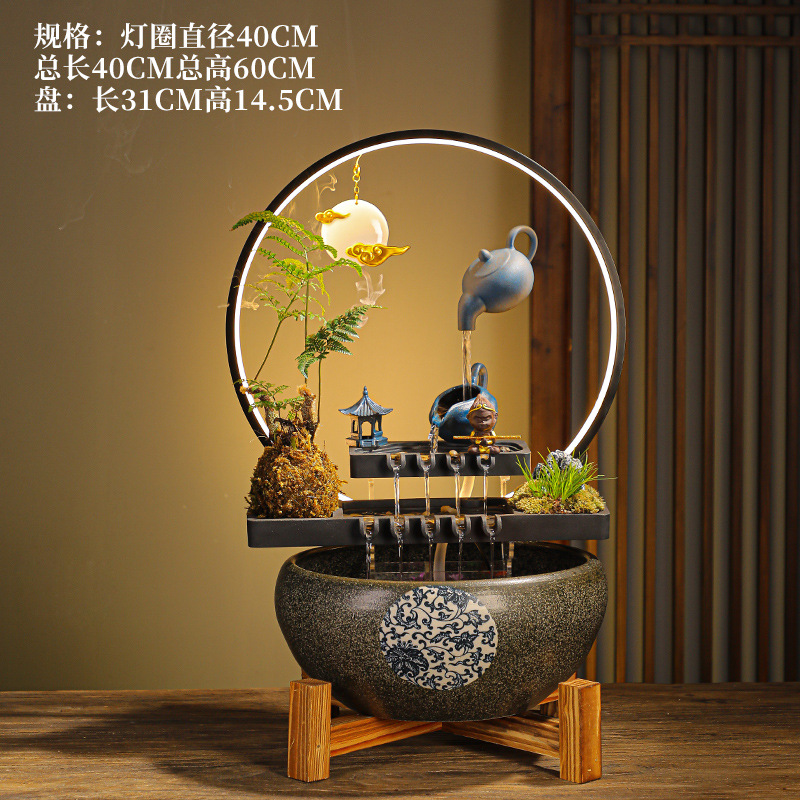 교수형 냄비 절묘한 물 순환 분수 어항 데스크탑 사무실 장식 새로운 집 창조적 인 중국 장식품스토어 가기