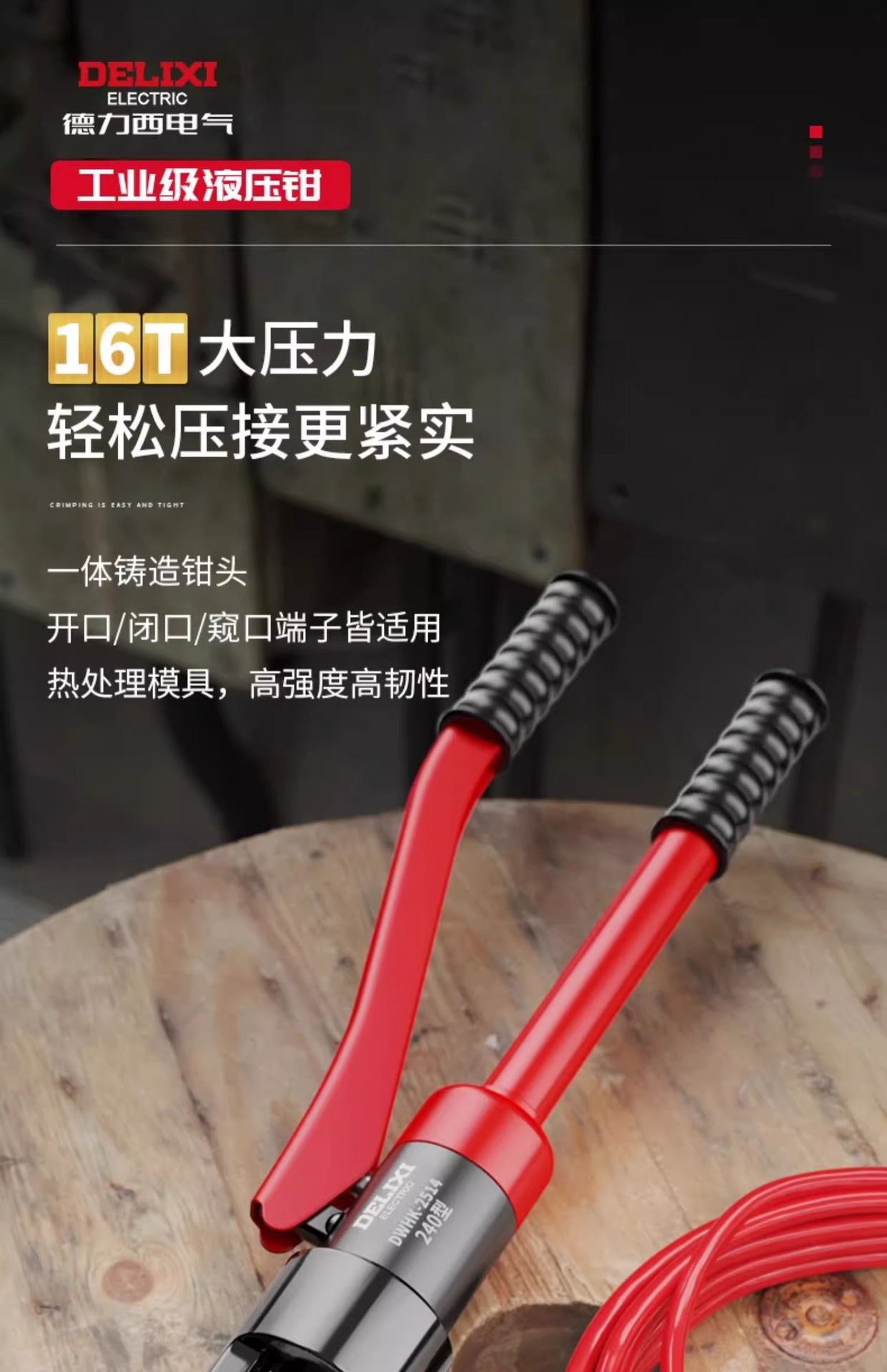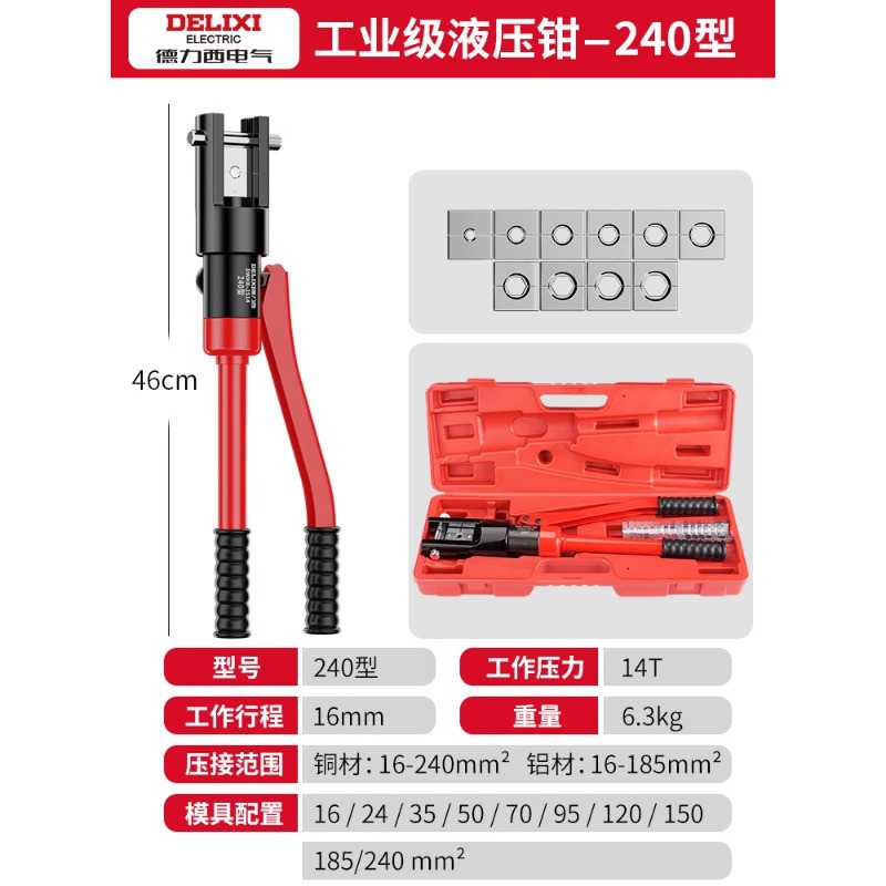 델리시 유압 펜치 단자 펜치 전기공용 120/240 압착 수동 구리 노즈 압착 펜치 교체형 헤드