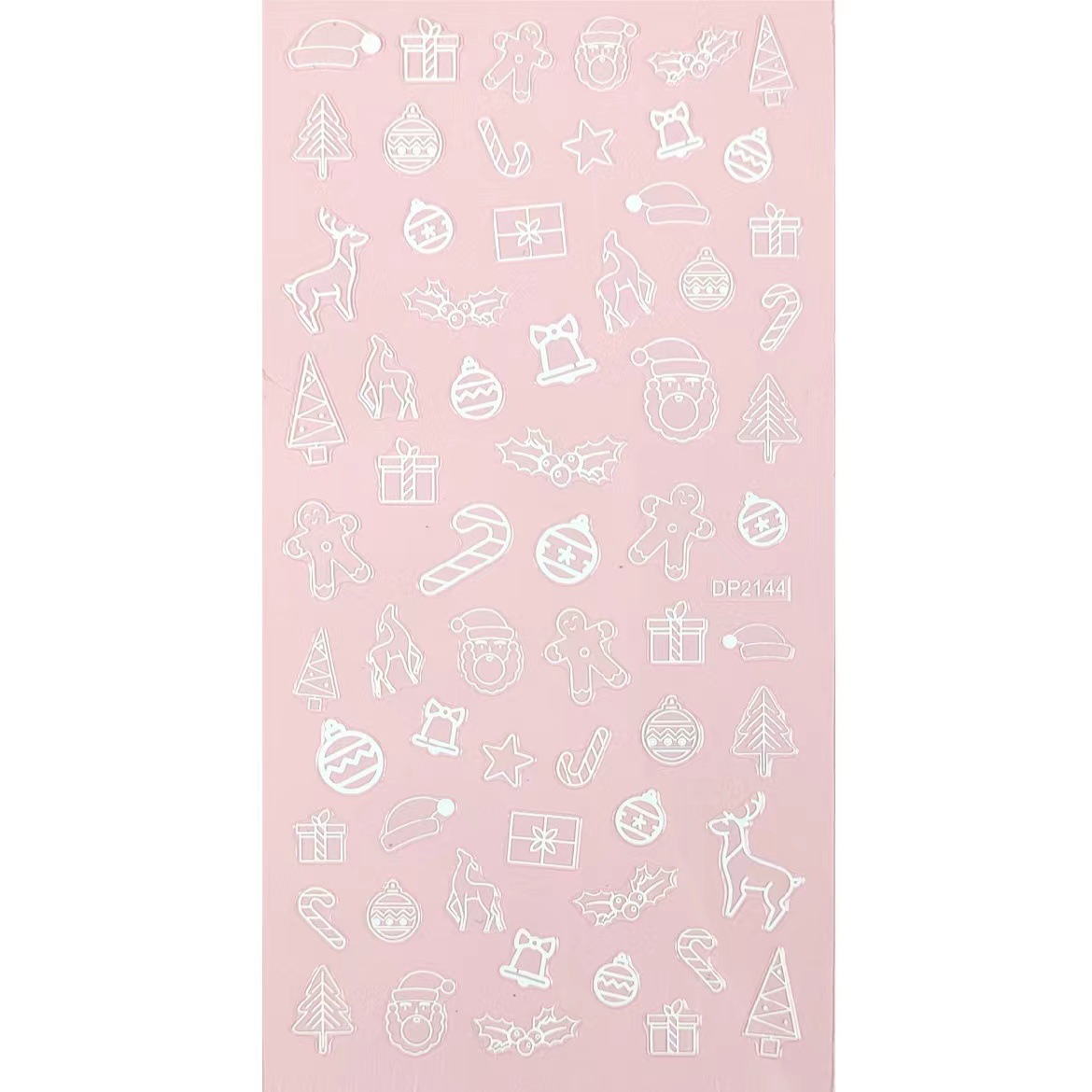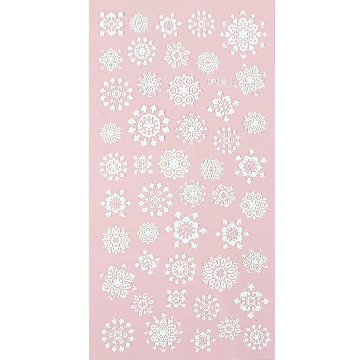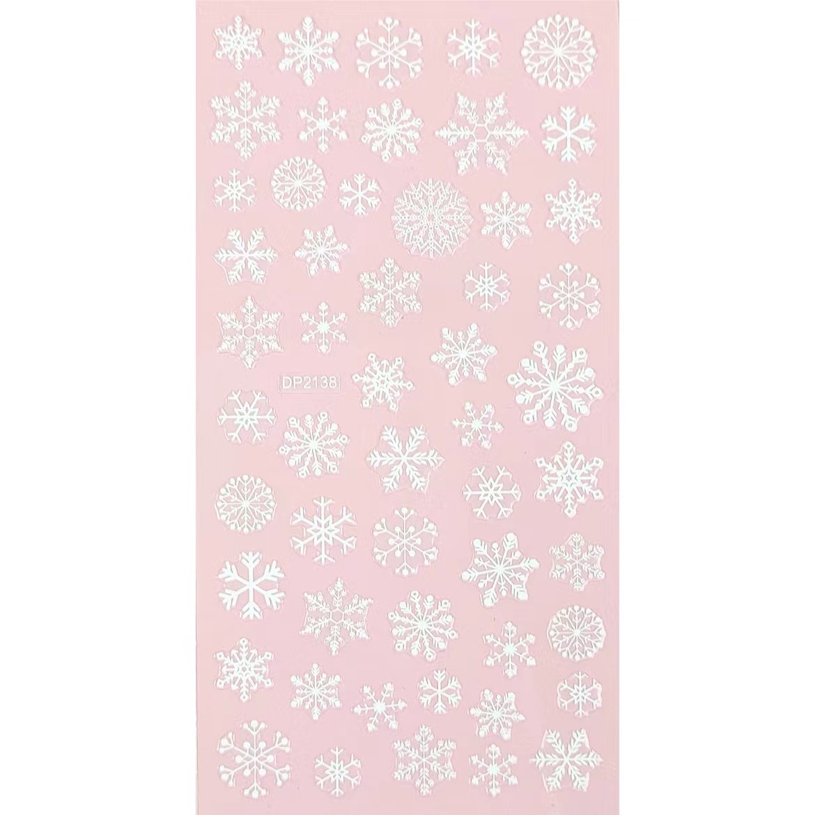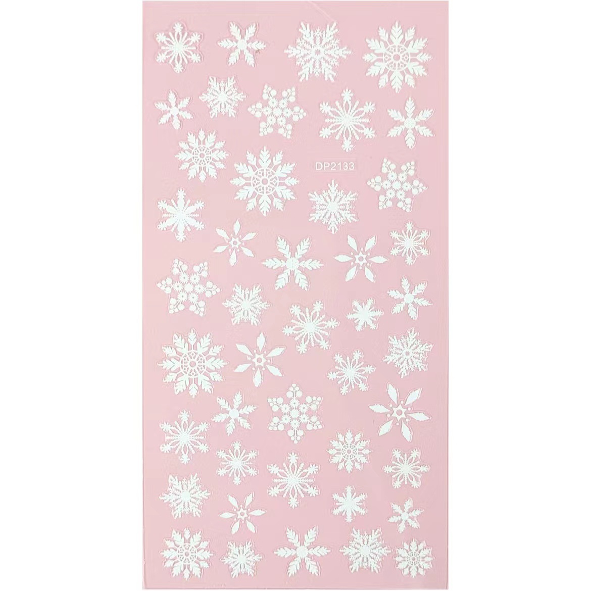 네일 아트 크로스 보더 새로운 데칼 브론징 퓨어 화이트 2 색 옵션 크리스마스 테마 작은 눈송이 패턴 독립 후면 접착 스티커