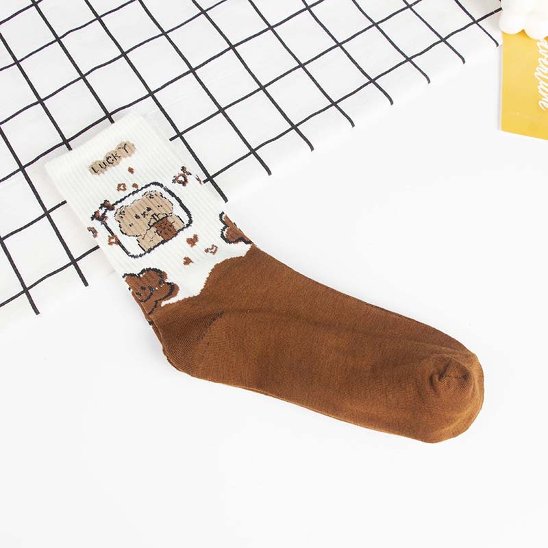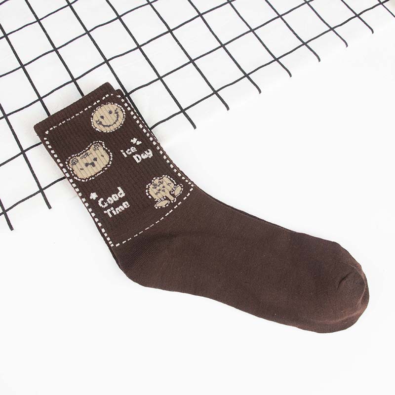 다크 브라운 양말 긴 스타킹 유행 한국어 유행 겨울 두꺼운 지구 색 복고풍 모든 일치 일본식 양말스토어 가기